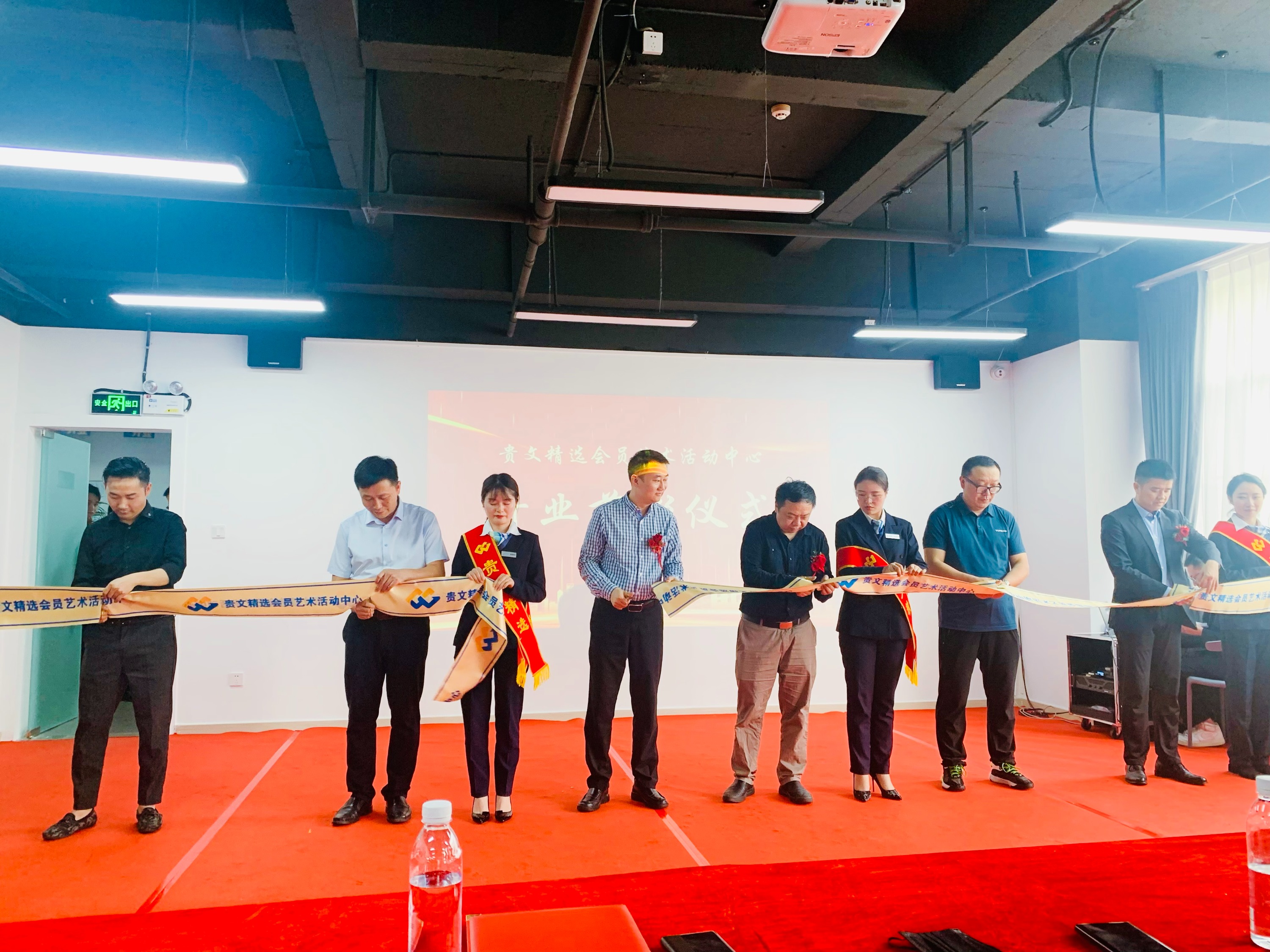 精彩的表演结束后,主持人邀请了贵州省文化产业投资管理有限公司董事会秘书陈成、贵州广播电视台文体旅事业部付博及到场的嘉宾代表上台进行开业庆典的剪彩仪式。