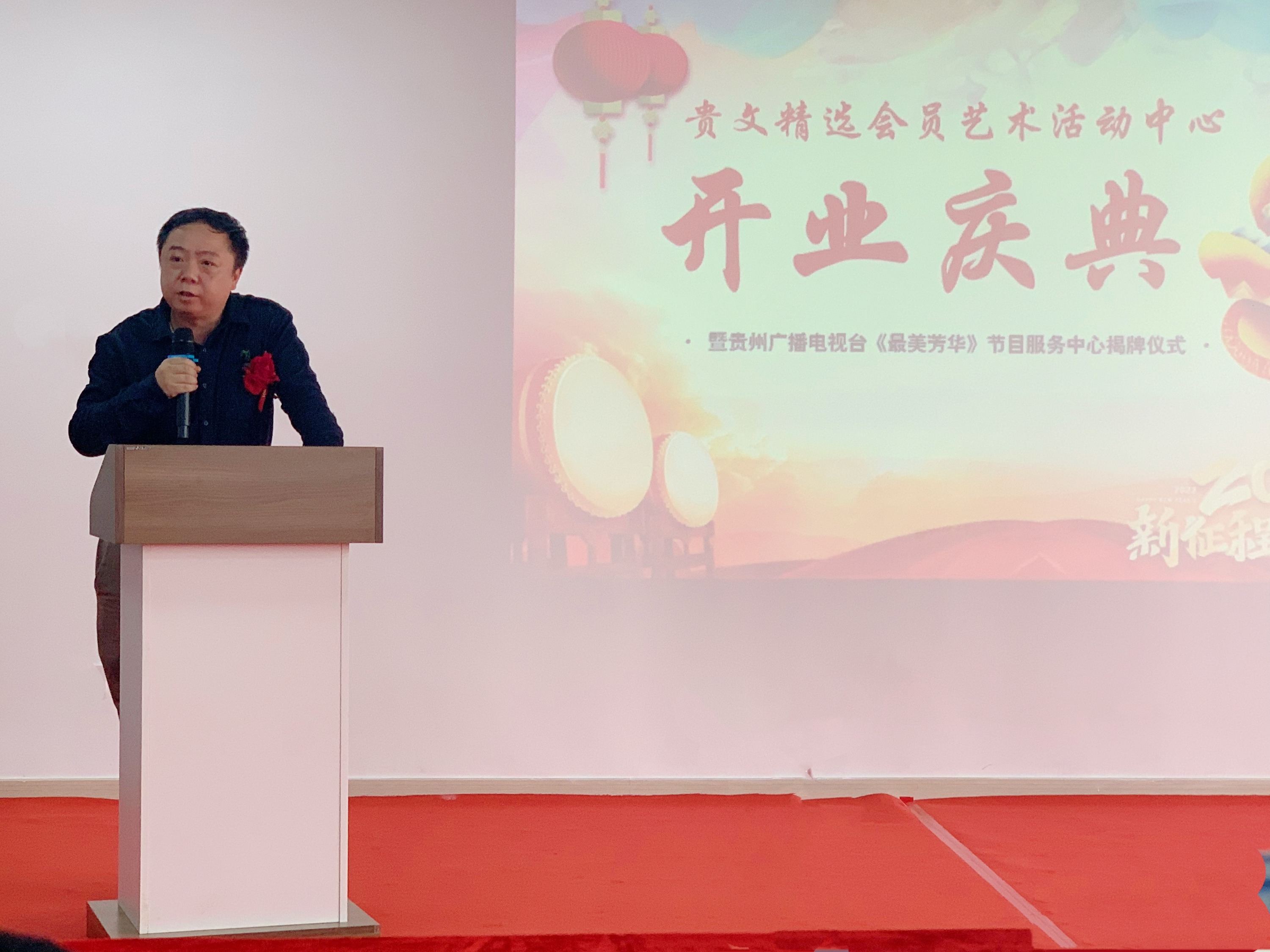 活动一开始,贵州省文化产业投资管理有限公司董事会秘书陈成作了致辞,他表示“2022年我们继续前行,再接再厉,2021年底,贵文精选已经与贵州广播电视台文体旅赛道签订合作协议,而今天,正是见证双方合作迈出坚实的第一步,双方共同打造会员艺术活动中心,为贵州百姓提供线下服务场景,为客户打造电视专栏节目。”