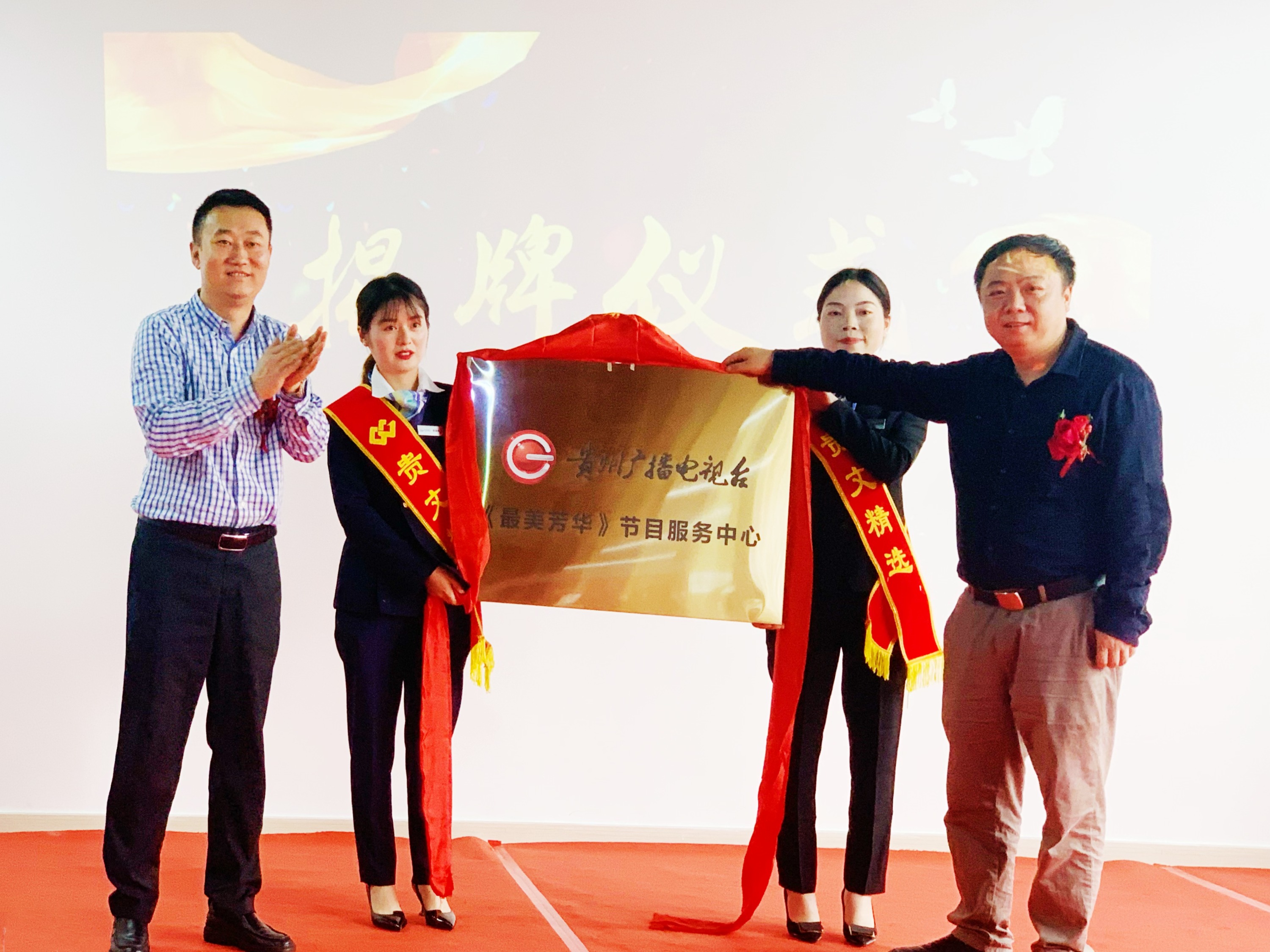 在阵阵的掌声中,贵州广播电视台《最美芳华》节目服务中心正式揭牌。到此,整个活动圆满结束!“咔嚓”的一声,摄影师拍下了合影,纪念这美好的一瞬间。