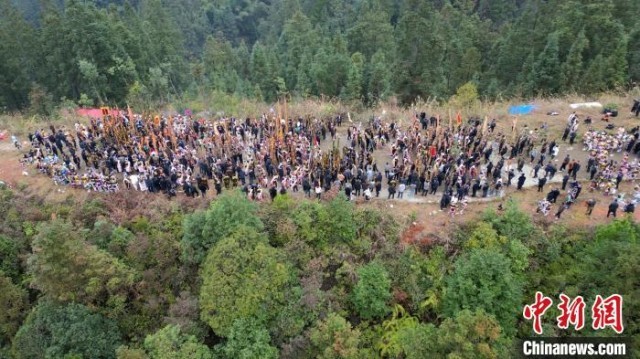 苗族同胞正在举行祭祖仪式。潘友婷 摄
