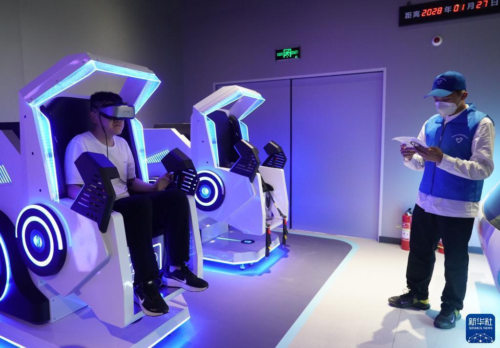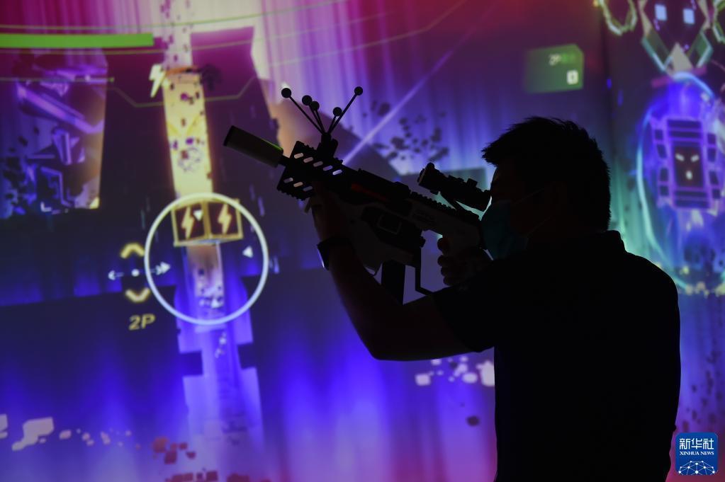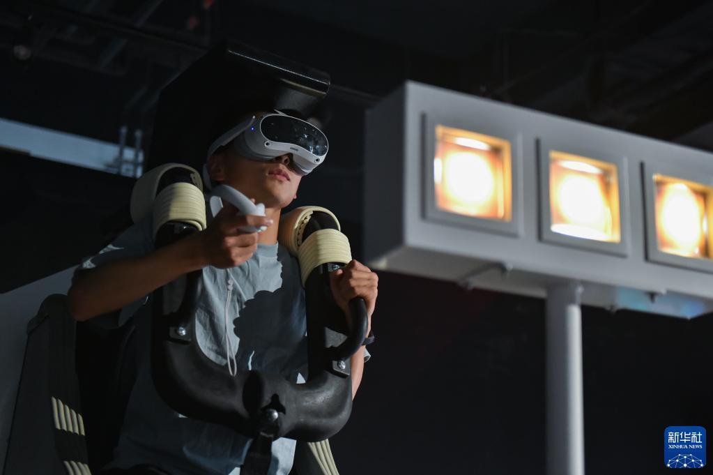 5月30日,在科幻产业新技术新产品展上,一名参观者在体验运用动作捕捉等技术的虚拟游戏。新华社记者 陈钟昊 摄