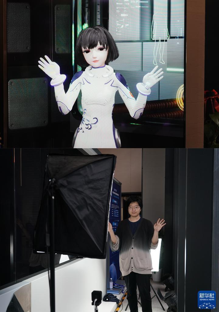 5月30日,工作人员在科幻产业新技术新产品展现场展示虚拟数字人(拼版照片)。新华社记者 任超 摄