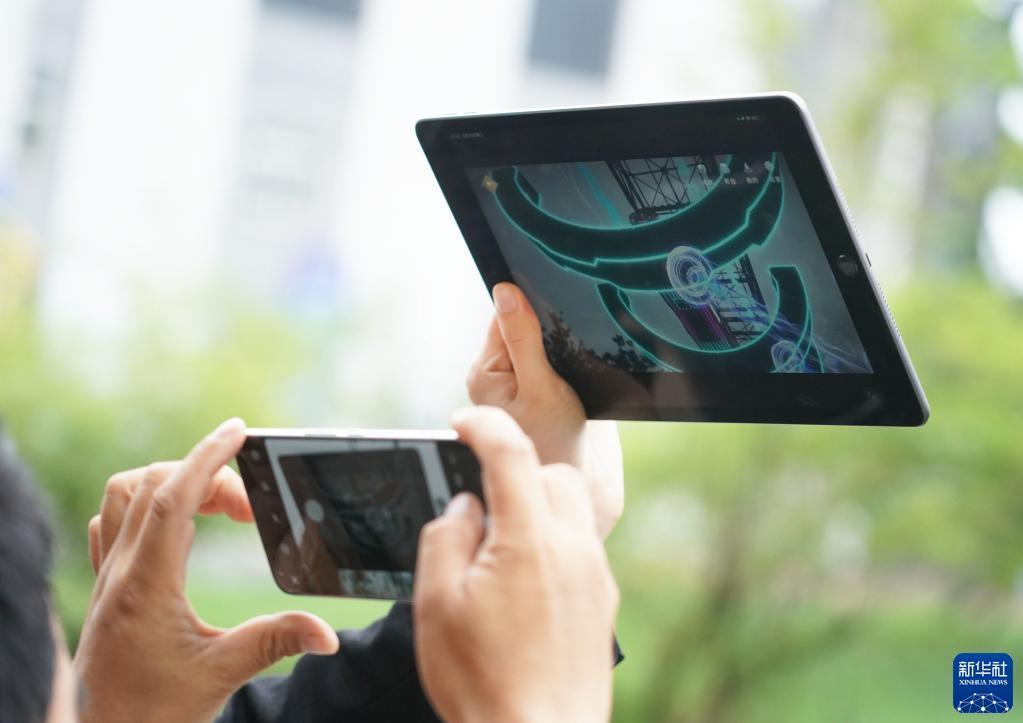 5月30日,工作人员在科幻产业新技术新产品展现场进行AR(增强现实)效果展示。新华社记者 任超 摄
