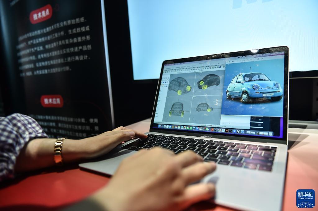 5月30日,在科幻产业新技术新产品展上,一名科技公司人员向记者展示可实现“2D生成3D”的AI自动生成软件。新华社记者 陈钟昊 摄