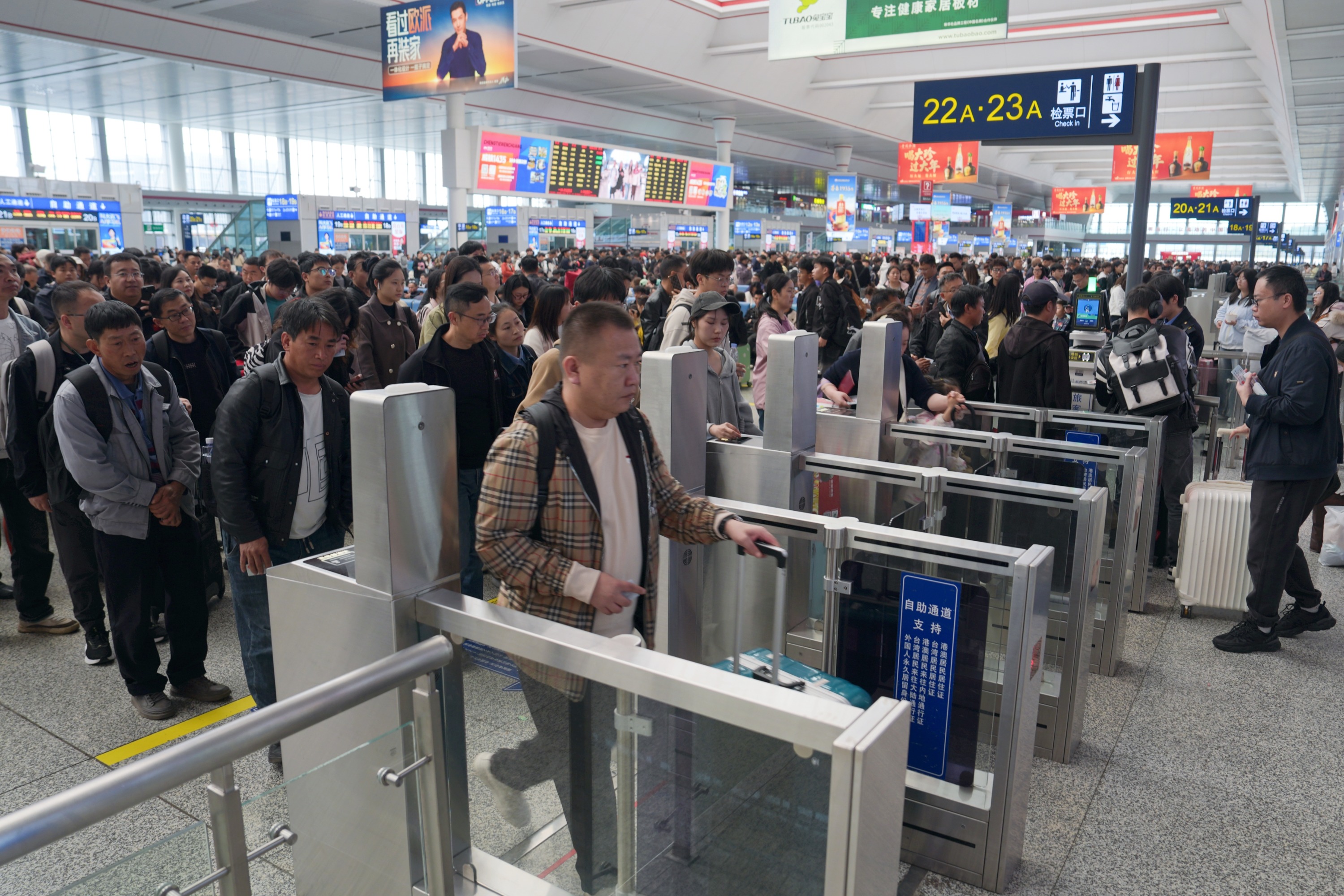 贵阳地区重点车站细化客流疏导方案,动态增开安检、检票通道,安排青年志愿者在进出站口、候车室、扶梯等关键部位引导帮扶,针对老年旅客、脱网人群提供爱心协助。在贵阳北站候车室,联合贵州省文旅部门设置特色文旅宣传展板,让旅客乘车前即能快速规划行程。