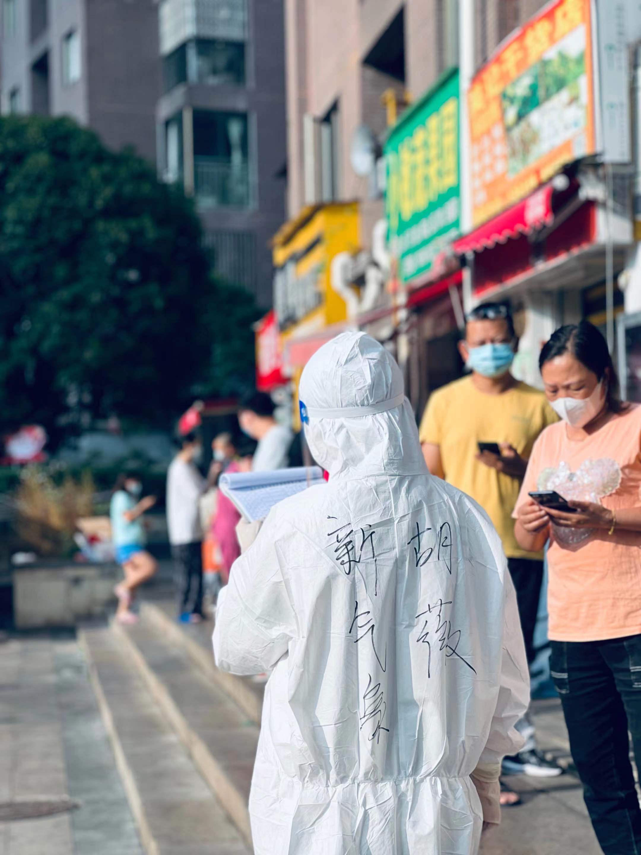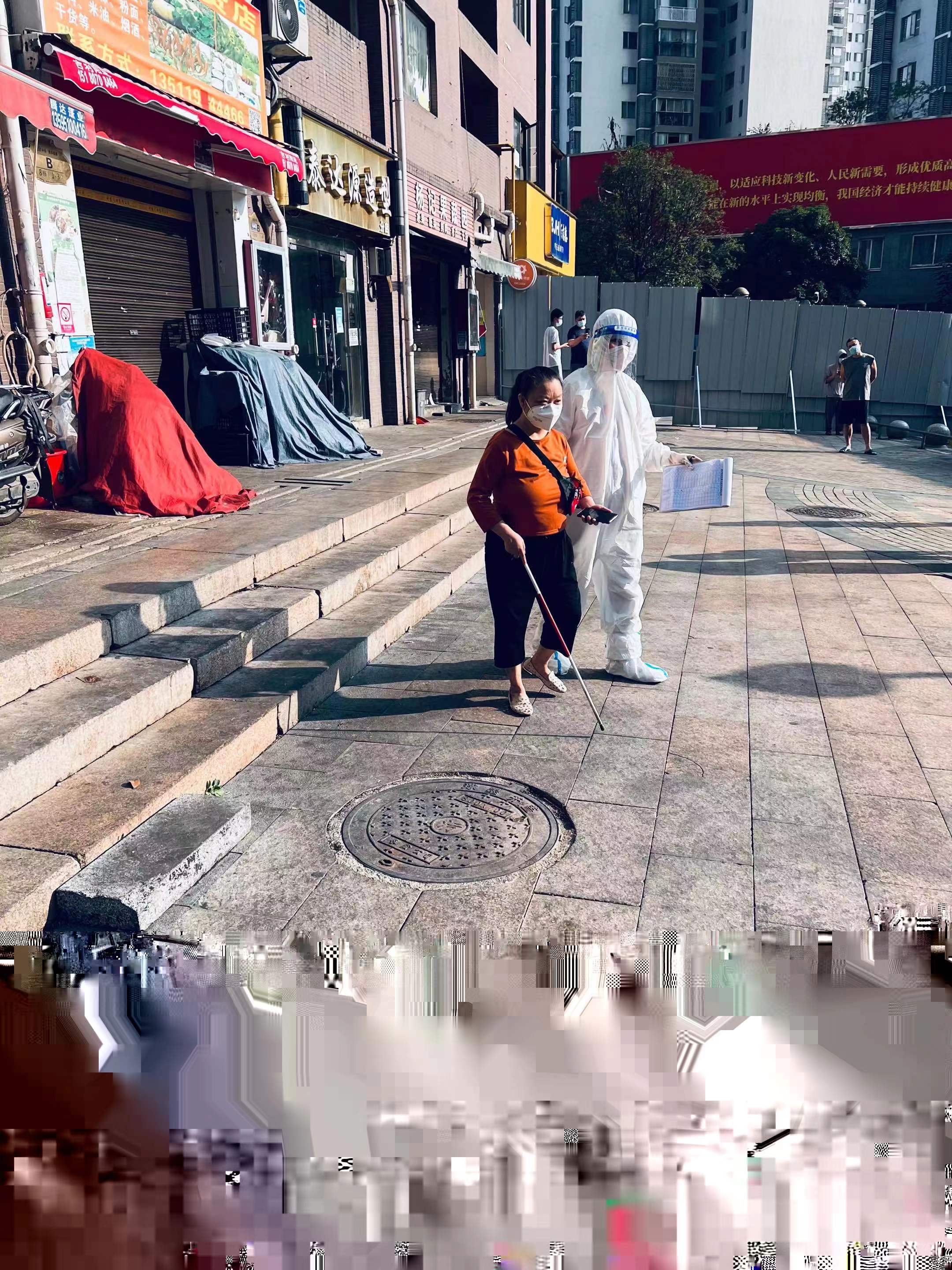 B8栋35楼4号房的业主是一位盲人,每次要求下楼做核酸检测对她来说都是一件困难的过程,由于考虑到这一点,每次,我都搀扶着她抵达又返回,而她每次都会非常温柔的连说好几声“谢谢你们,谢谢你们,你们真是不容易,辛苦了。”每每听到她这样说,我都会感觉自己身边有一束光照耀着,特别温暖。