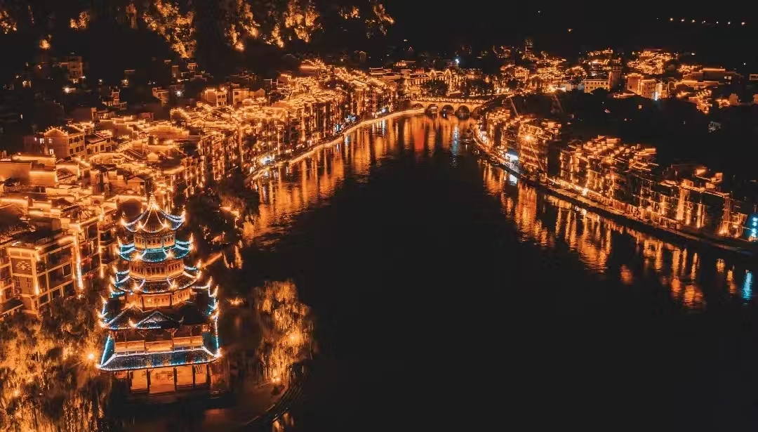 这个隐藏在深山之中的中国最大的苗寨,在夜色中慢慢舒展开灯火,仿佛梦幻的不夜城。