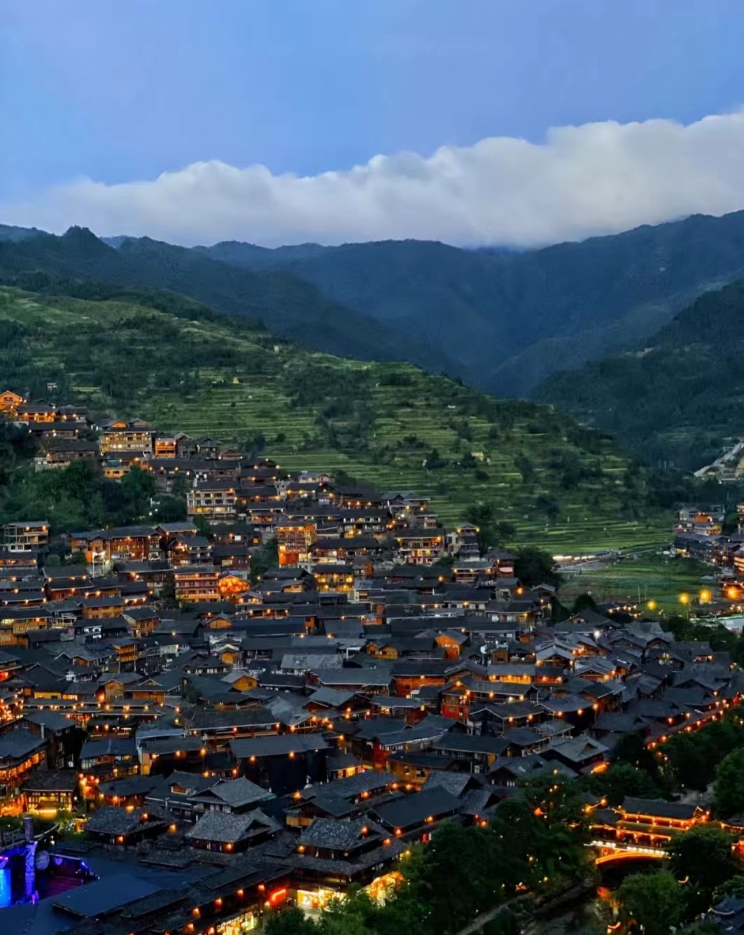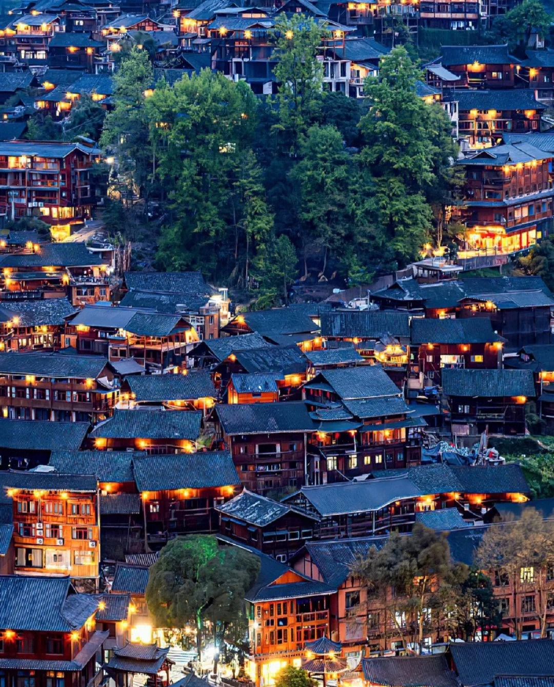 This largest Miao Village in China hidden in the deep mountains slowly unfolds its lights in the night, like a dreamy city that never sleeps.
