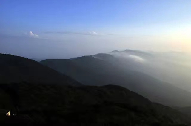 Diaojiaolou in the dim night, surrounded by the hazy mountain shadow, is full of mystery.