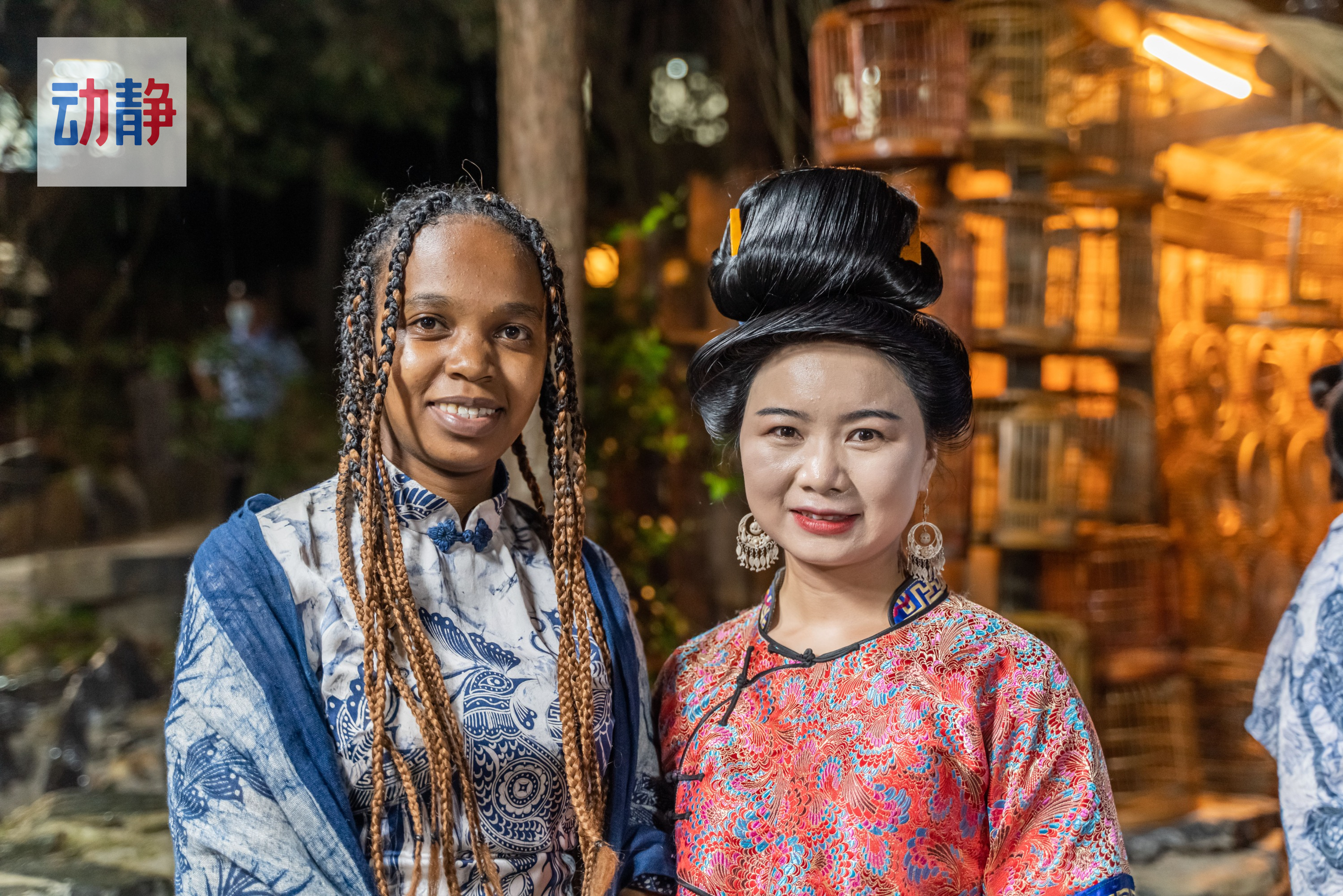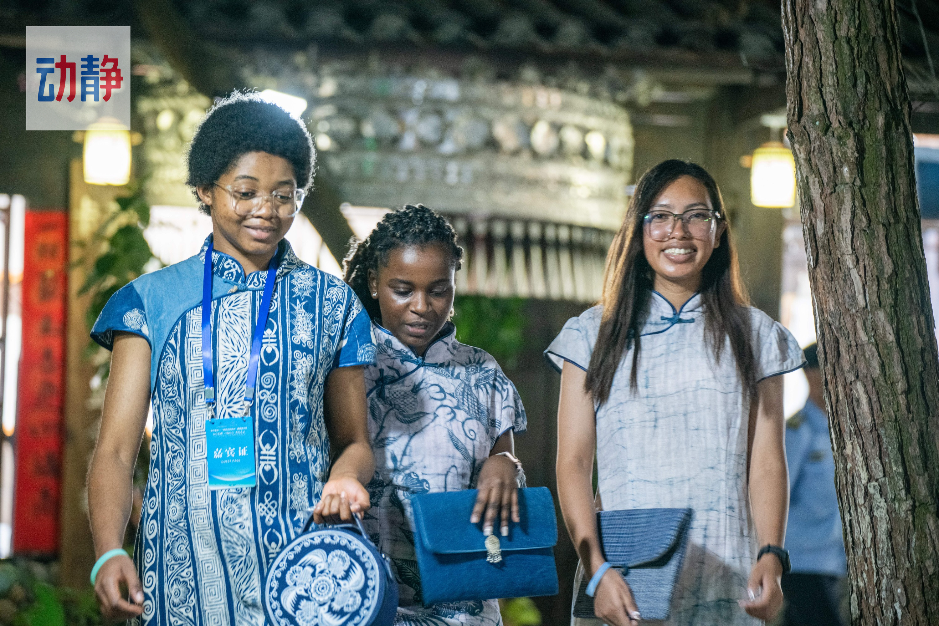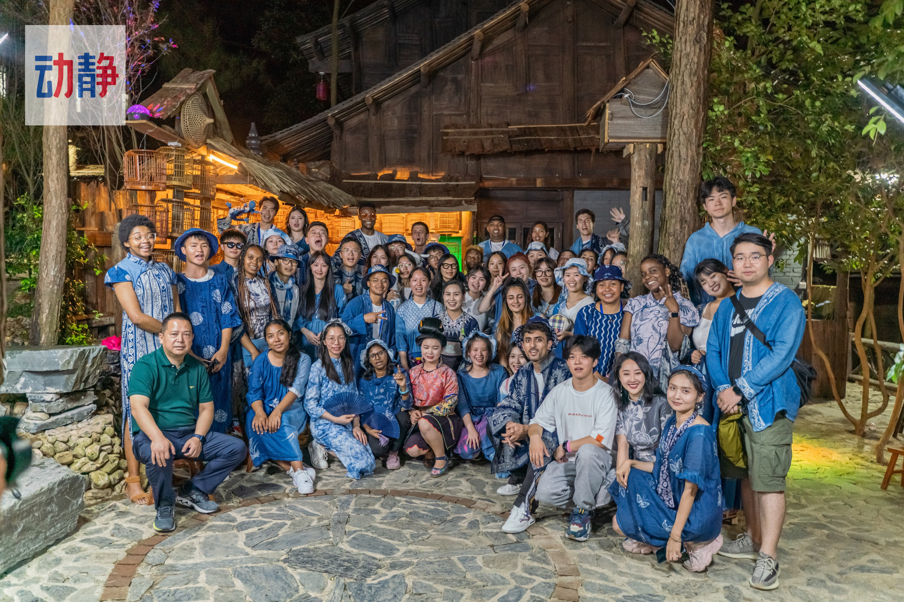 7月21日晚,“知行贵州——畅游文旅贵州夏令营”活动中来自省内外各高校的国际学生在丹寨县龙泉镇卡拉景区内上演了一场别开生面的苗族蜡染服饰走秀。