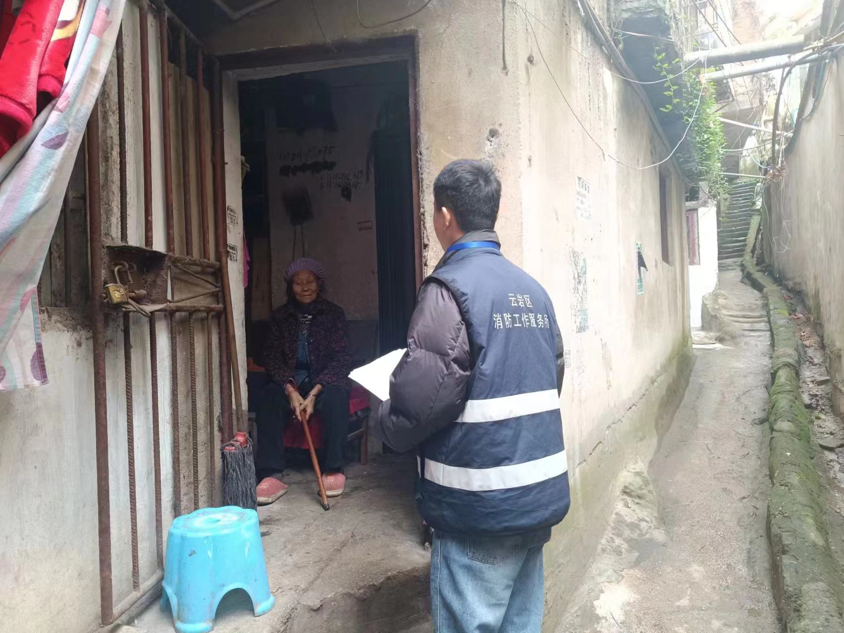 三是敲门入户“筑牢安全墙”:大队发动宣传员及辖区各消防工作服务所员工联合基层网格员重点对社区“鳏寡孤独”人群开展进家入户的消防安全宣传,叮嘱劝诫其不要在家中过量堆放纸壳等易燃杂物;同时,将《家庭消防安全常识》送到居民手中,针对年关将近熏烤腊肉较多的情况,为居民讲解如何预防家庭火灾的发生、遇到火灾如何逃生自救等消防安全基础知识,叮嘱居民严禁“一线多用”超负荷用电,严禁电动自行车在楼内停放充电,及时清理厨房、楼道、阳台的可燃物,出门时要关闭家用电器电源、燃气阀门,做到防患未“燃”。