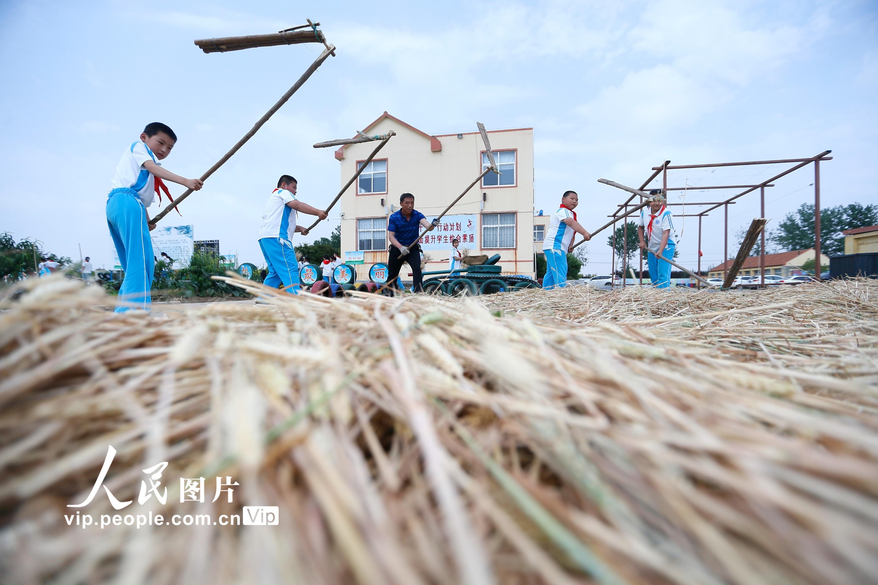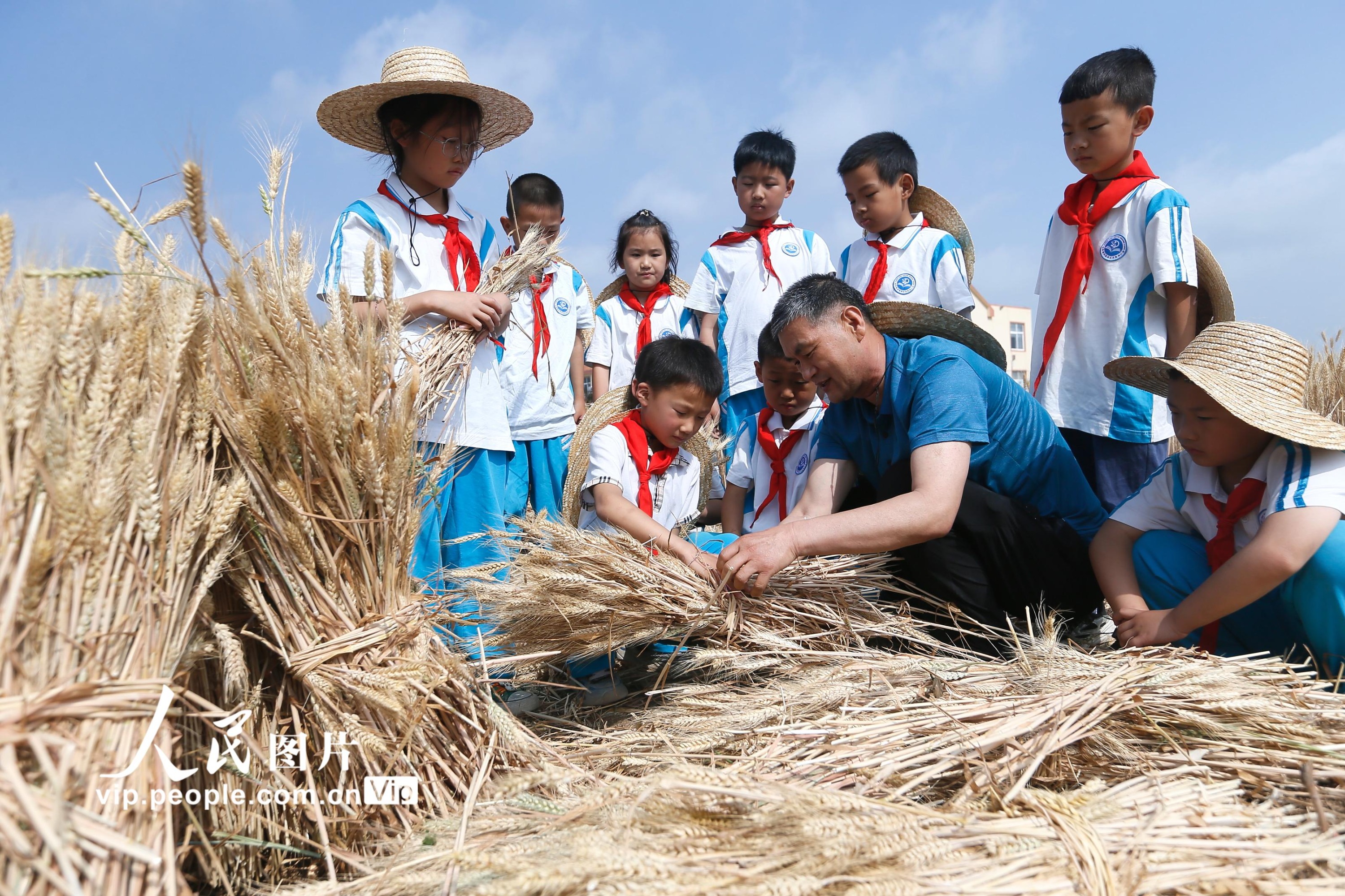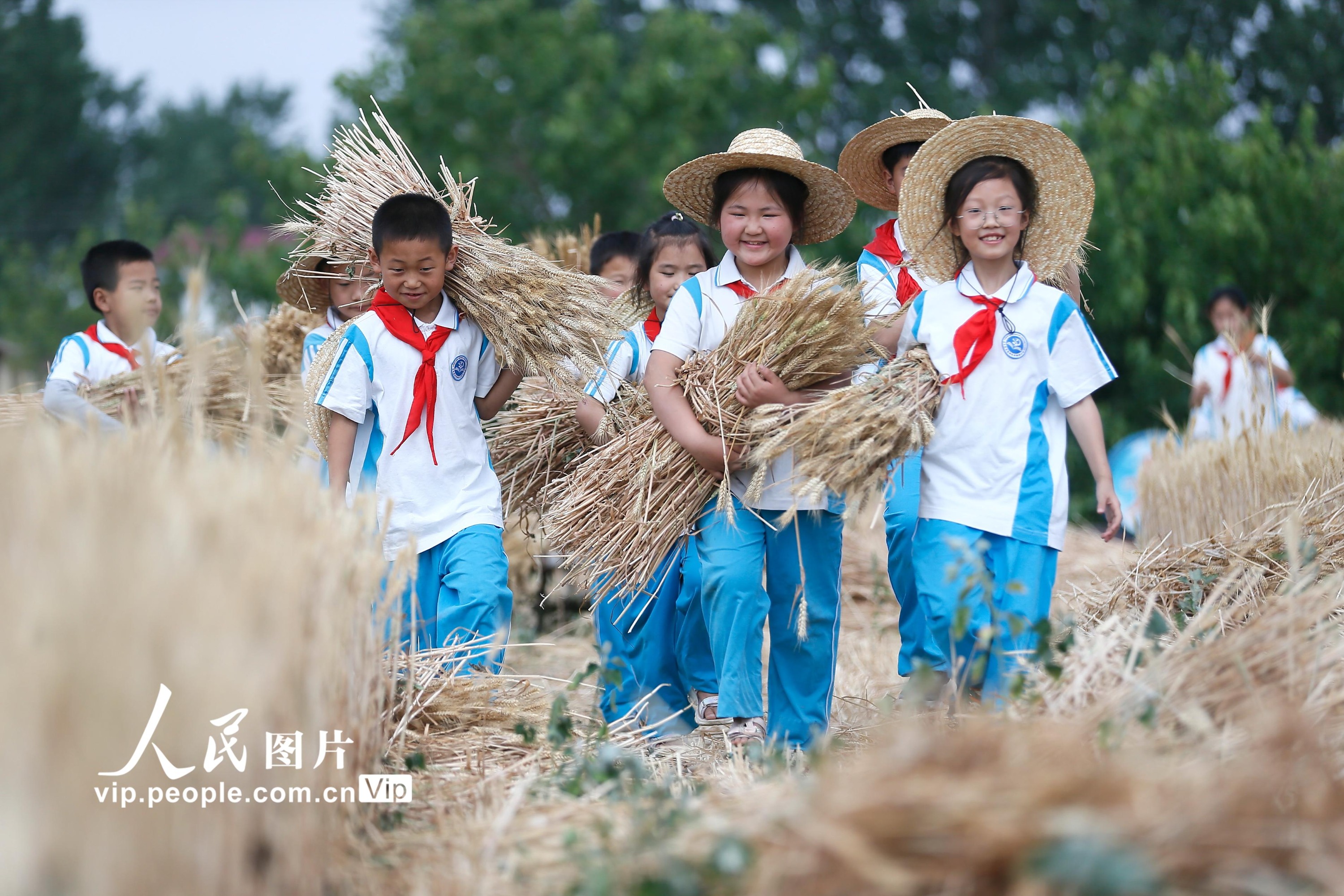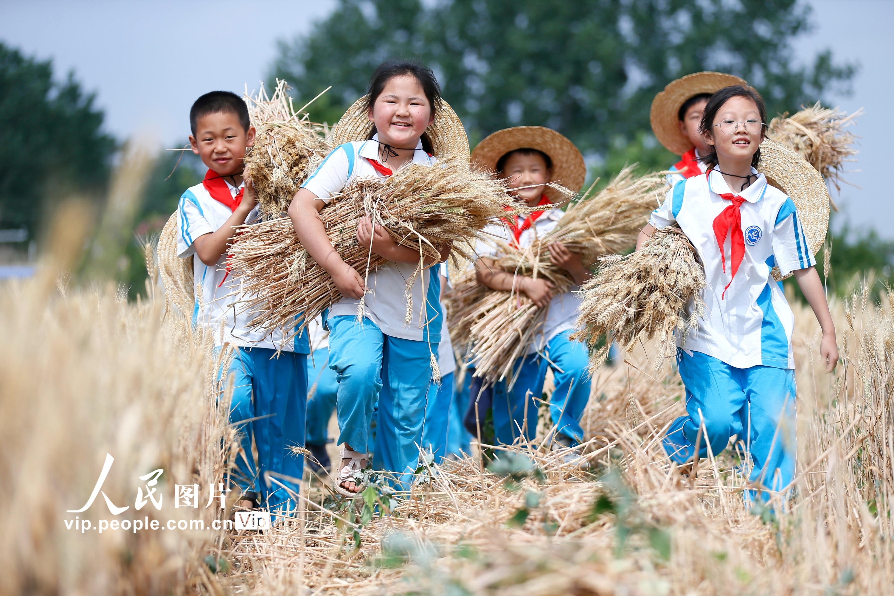 据悉,为拓展学生的劳动素质教育空间,青岛市即墨蓝谷高新区东皋埠小学利用校园闲置地块,开辟了劳动实践基地,通过引导学生参与小麦的种植、管理、收获全过程,培养孩子们热爱劳动和珍惜粮食的好习惯。梁孝鹏摄(人民图片网)