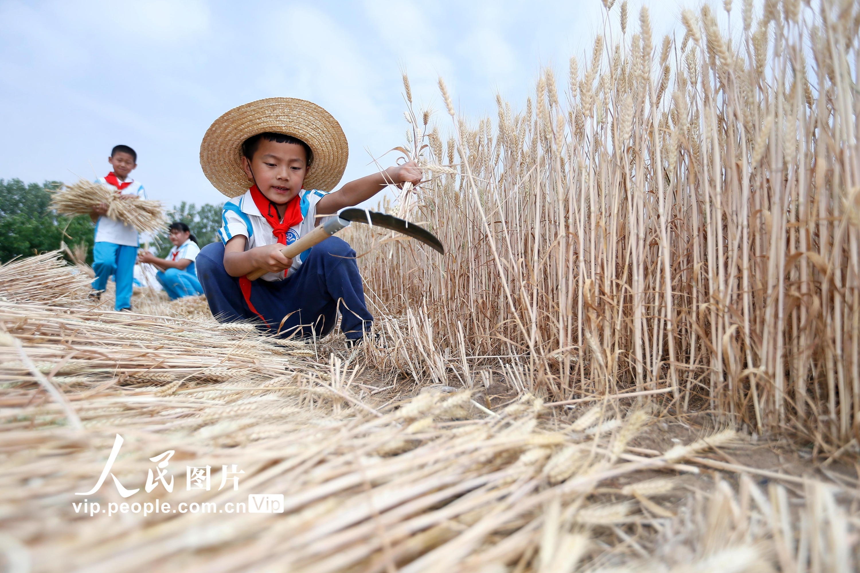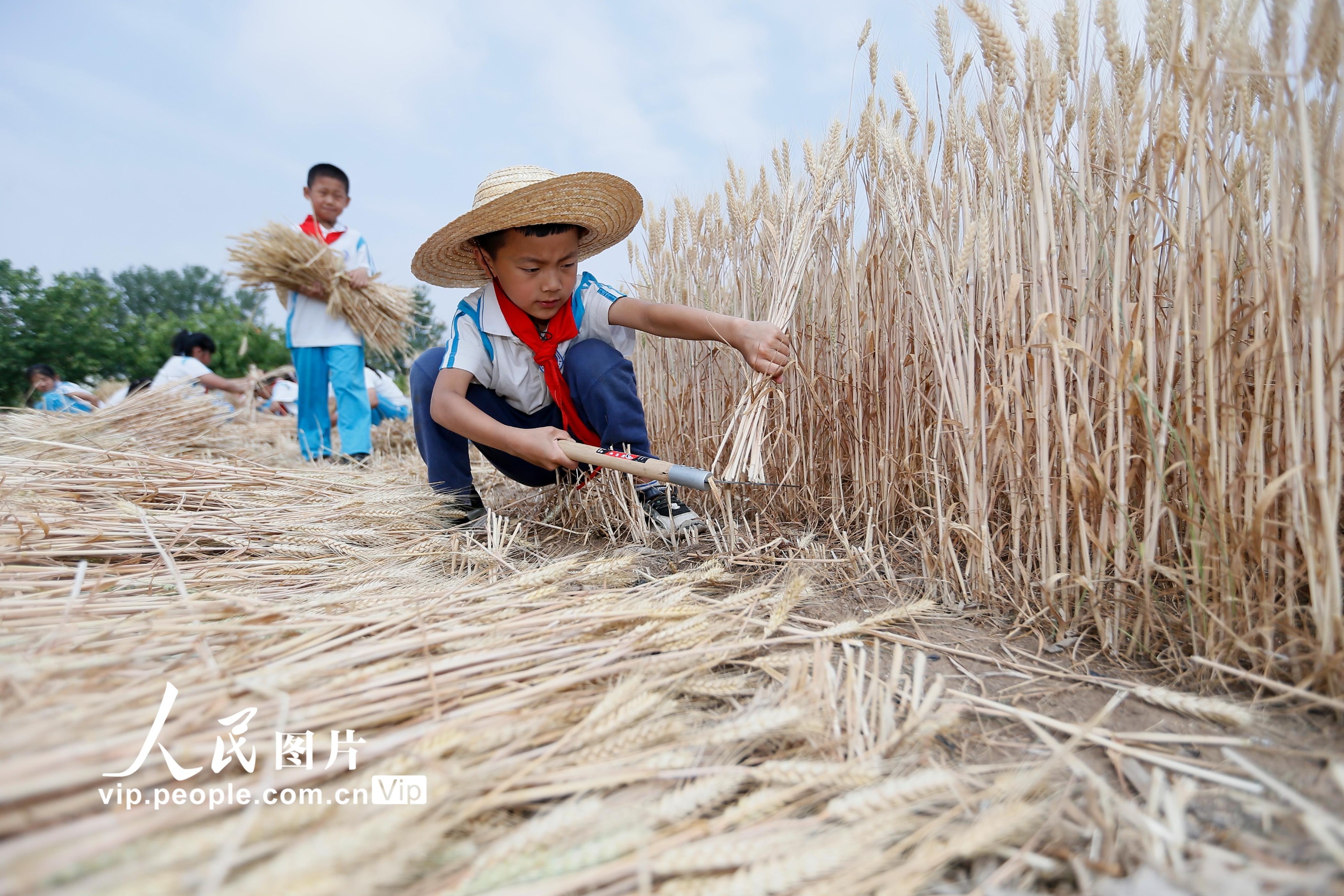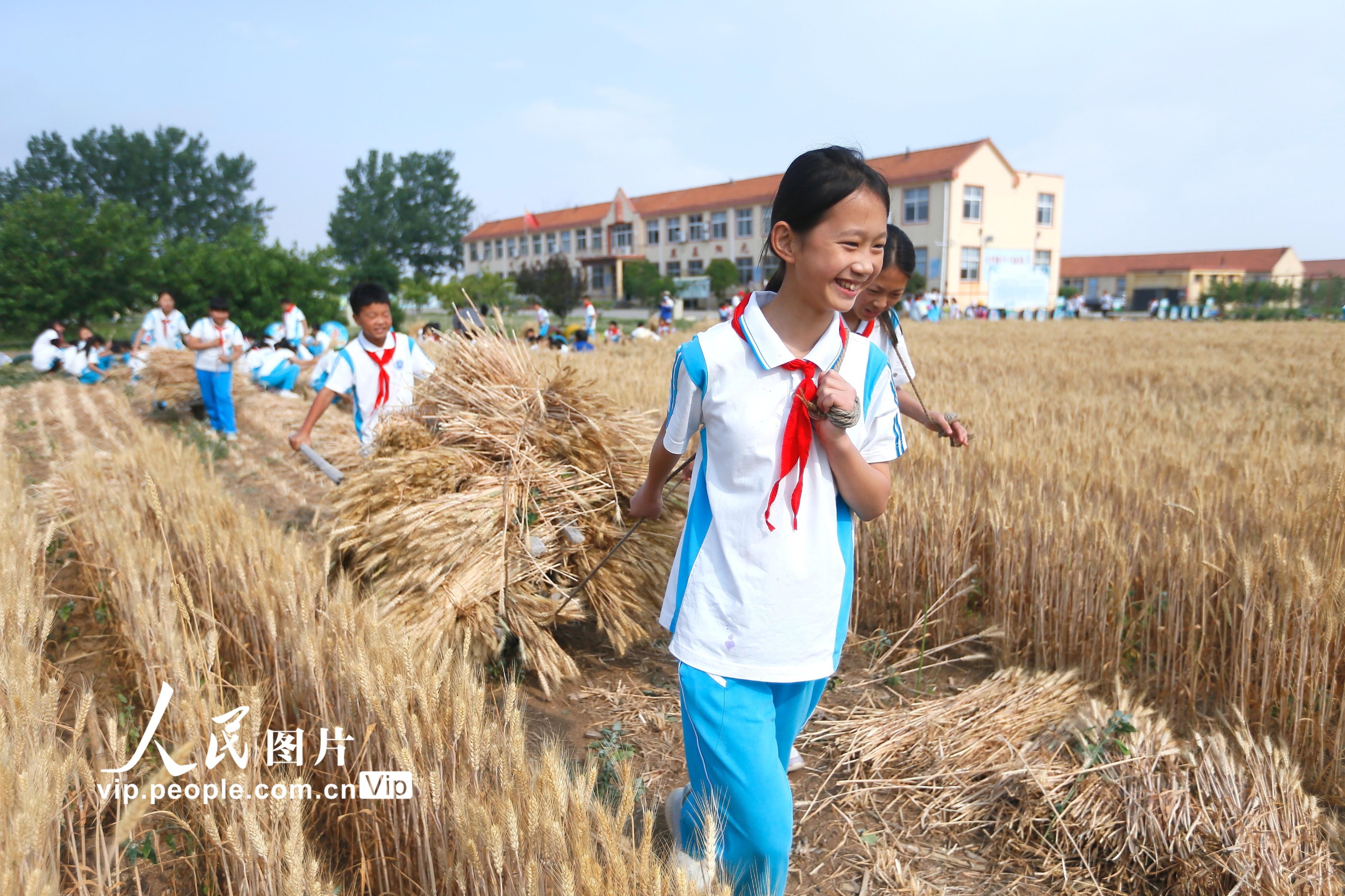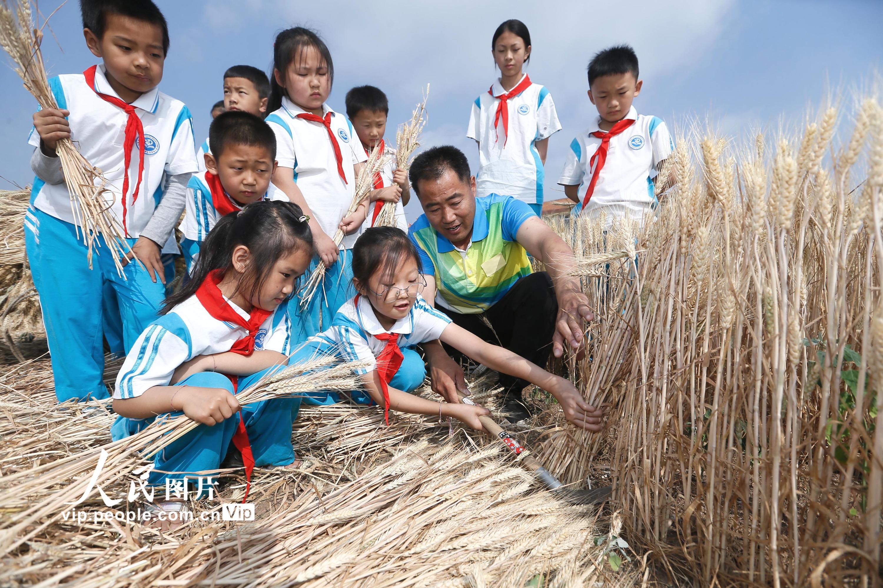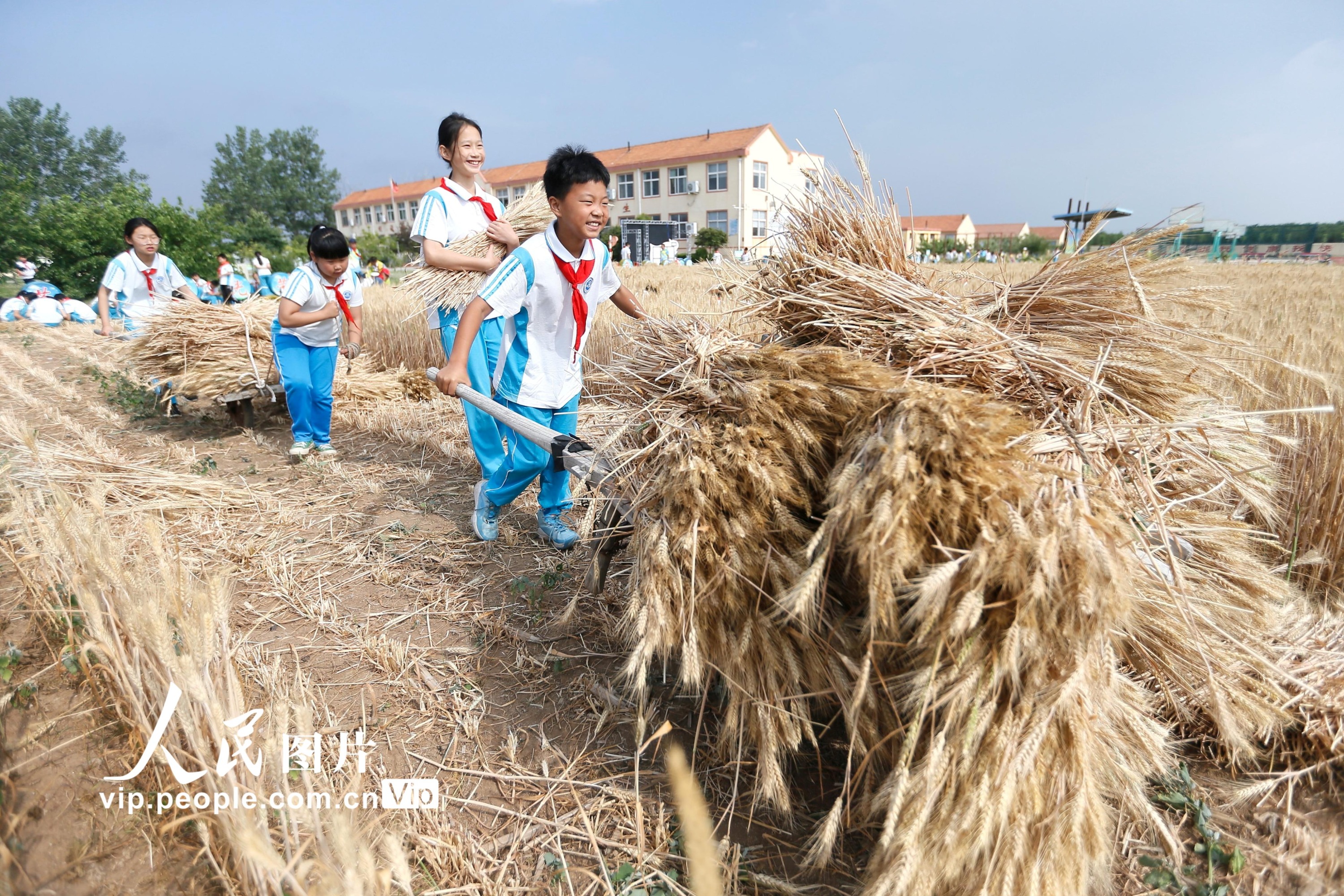 据悉,为拓展学生的劳动素质教育空间,青岛市即墨蓝谷高新区东皋埠小学利用校园闲置地块,开辟了劳动实践基地,通过引导学生参与小麦的种植、管理、收获全过程,培养孩子们热爱劳动和珍惜粮食的好习惯。梁孝鹏摄(人民图片网)