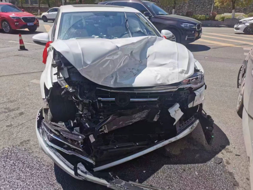 被撞的白色小型轿车失控,车身右侧又与正对向行驶的驾驶员万某某驾驶的粉色小型轿车前部碰撞。