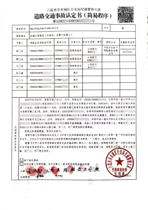 贵州交通广播记者从贵州省公安厅交通管理局获悉。2023年4月4日,六盘水水城区公安局交警大队接到报警,称在水城大道路段处发生三车相撞交通事故,请出警。