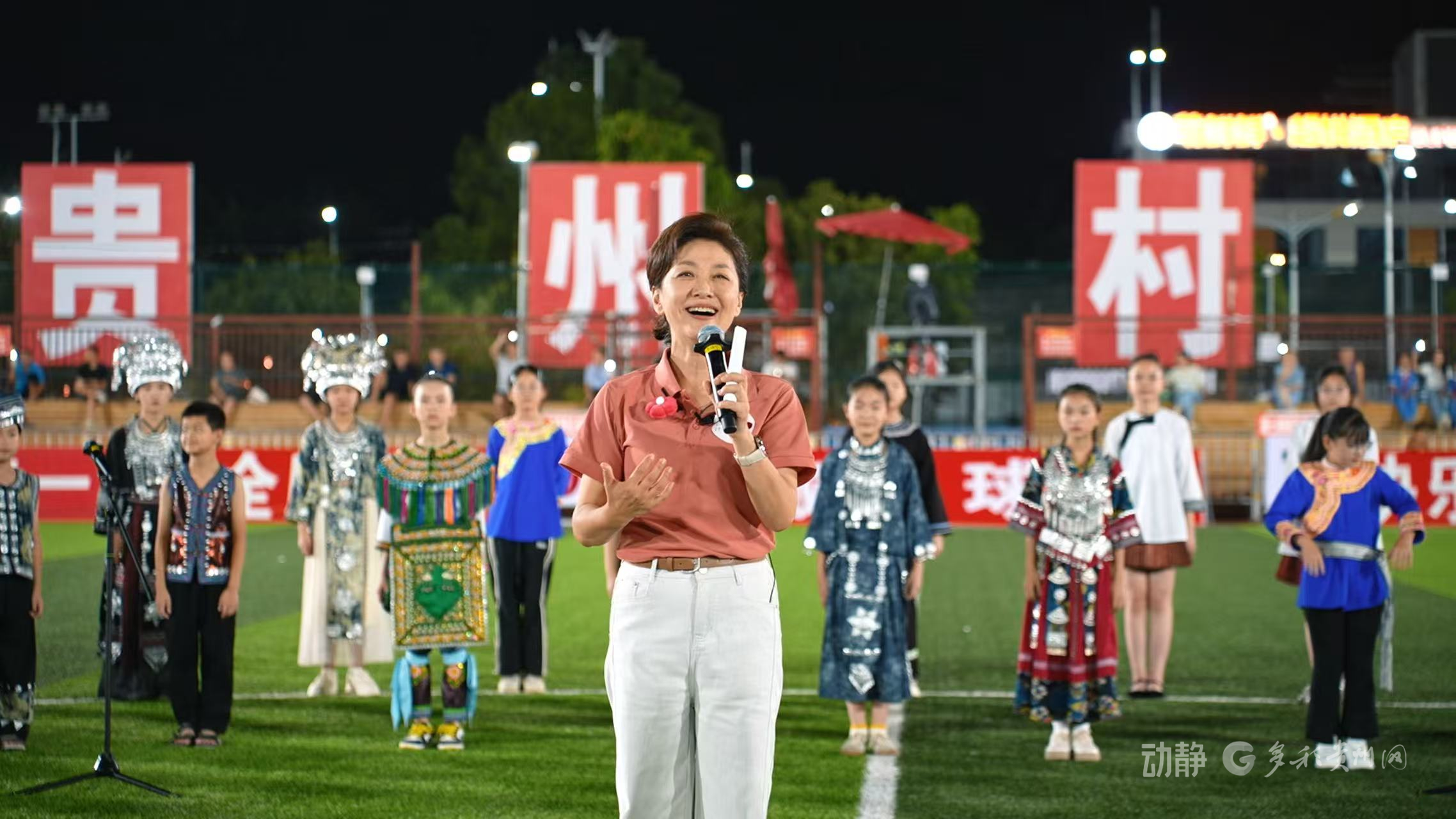 海霞与榕江县的孩子们在“村超”赛场上共唱《我和我的祖国》