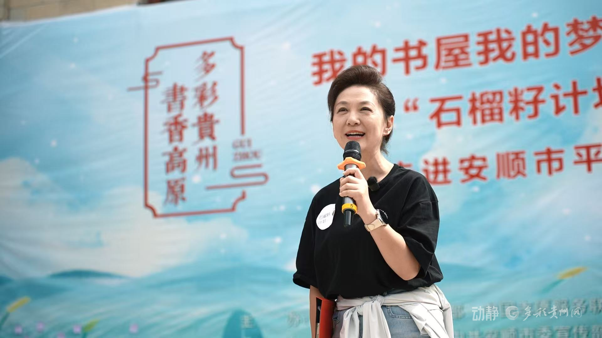 此次贵州行,“石榴籽计划”发起人、央视主持人海霞带领“石榴籽计划”贵州公益行团队以名师课堂、情景阅读、图书捐赠等形式助力贵州少年儿童阅读推广。