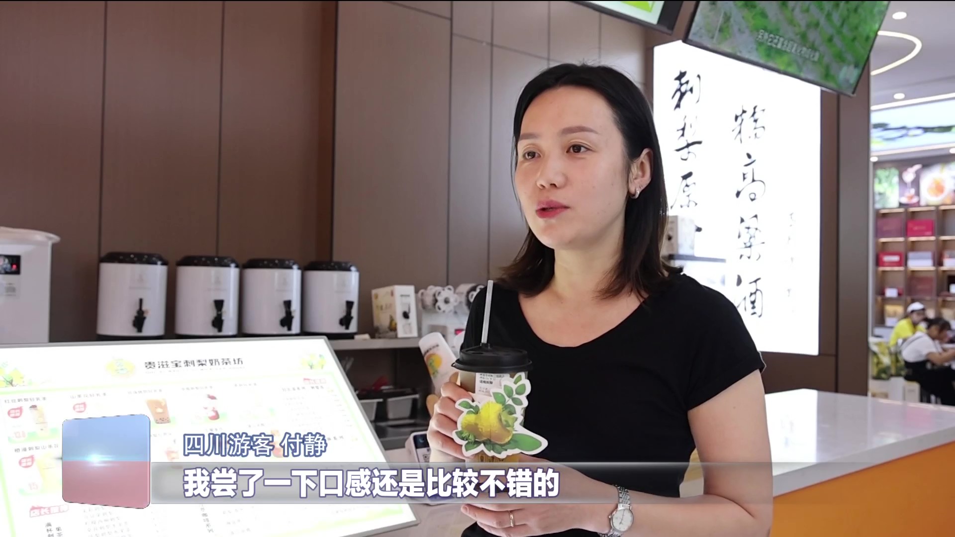 四川游客付静说,刺梨是含维C是非常高的,看到这个刺梨饮品,尝了下,味道还是不错的。