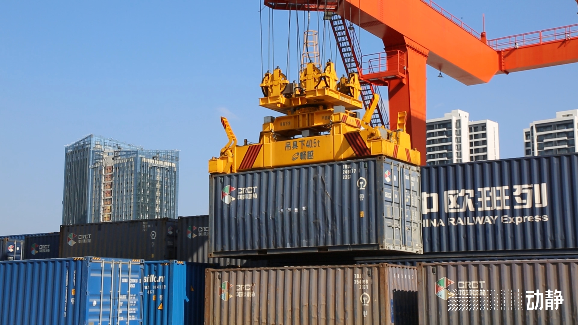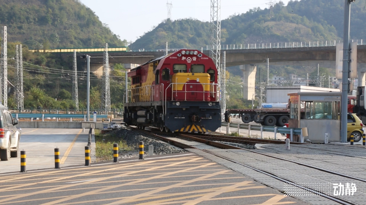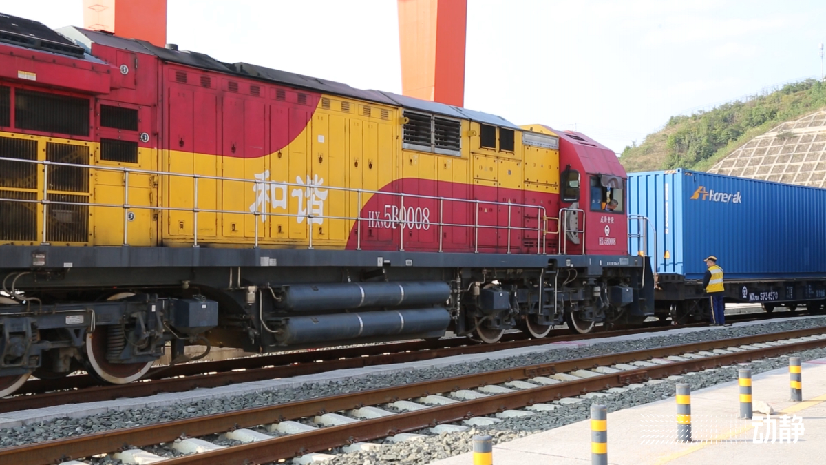 记者采访时,传来了一阵清脆的汽笛声,一辆红黄相间的火车由远及近,周斌告诉记者,这就是中欧班列,每周四开启。