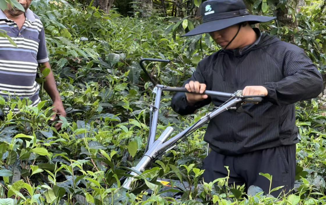 在技术推广中,我们借助中文-英语-僧伽罗语的三层翻译,将复杂技术转化为农户能看懂的操作步骤。Sajith成了关键纽带,我们先教会他,再由他手把手教给农户,形成闭环传递。当地茶园主Keerthi更是主动加入,积极参与技术改良,为开沟机焊接挡板以适配当地茶园环境,成了我们的“动手王”。我想,这不仅仅是技术的落地,更是本土智慧与外来科技的完美融合。