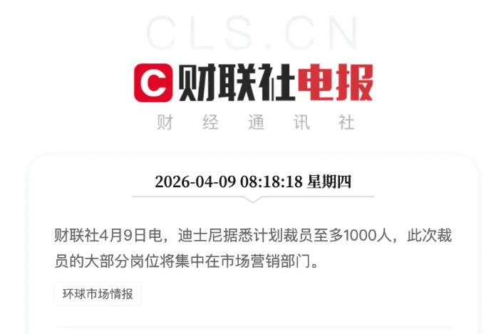4月9日,据财联社消息,迪士尼据悉计划裁员至多1000人,此次裁员的大部分岗位将集中在市场营销部门。