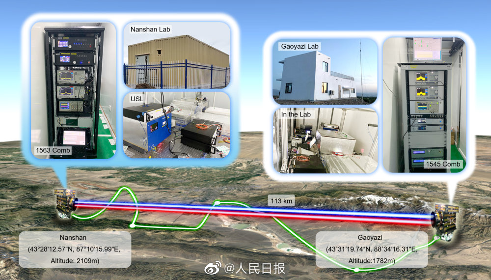 ▲我国科研团队在国际上首次实现了百公里级的自由空间高精度时间频率传递实验,时间传递稳定度达到飞秒(千万亿分之一秒)量级,频率传递万秒稳定度优于4E-19(相当于时钟约一千亿年的误差不超过一秒),可满足目前最高精度光钟的时间传递要求。