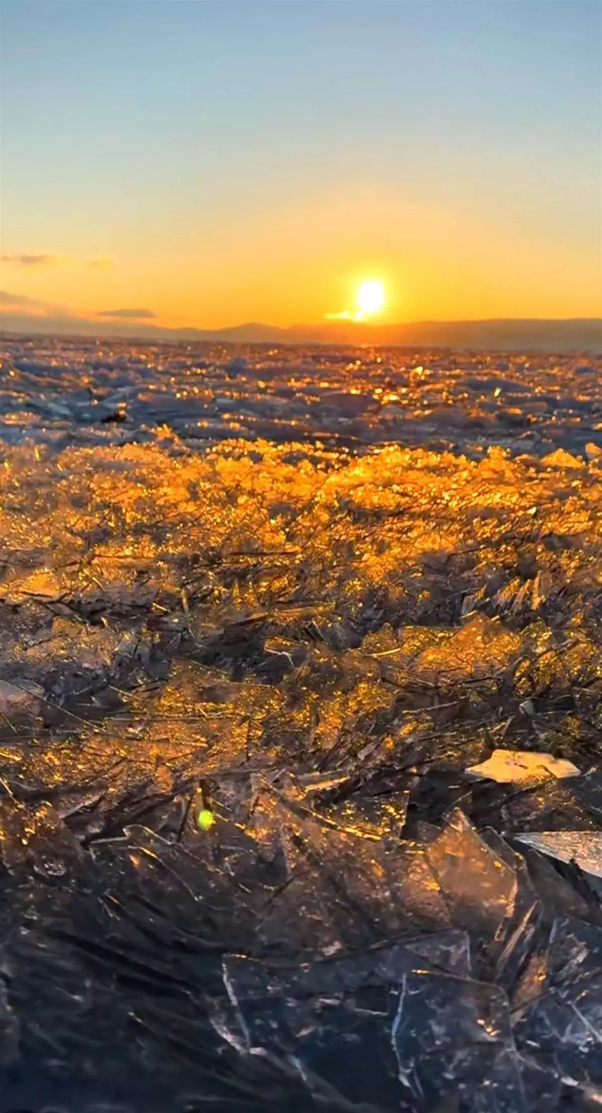 有网友在相关视频的评论区写道:“这简直就是‘浮光跃金’最生动的体现。”还要网友表示,这些晶莹剔透的冰片,层层叠叠,被推向岸边,酷似巨龙的鳞片。