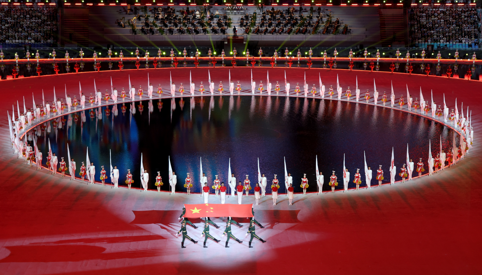 开幕式以“圆梦未来”为主题,包括“同根同源、同心同缘、同梦同圆”三个篇章,通过现代化的艺术手法和创新技术进行呈现,让全国观众感受体育激情、粤港澳大湾区独特人文风貌的同时,生动诠释了粤港澳三地同心圆梦的内涵,展现了粤港澳大湾区共生共荣的融合之美。