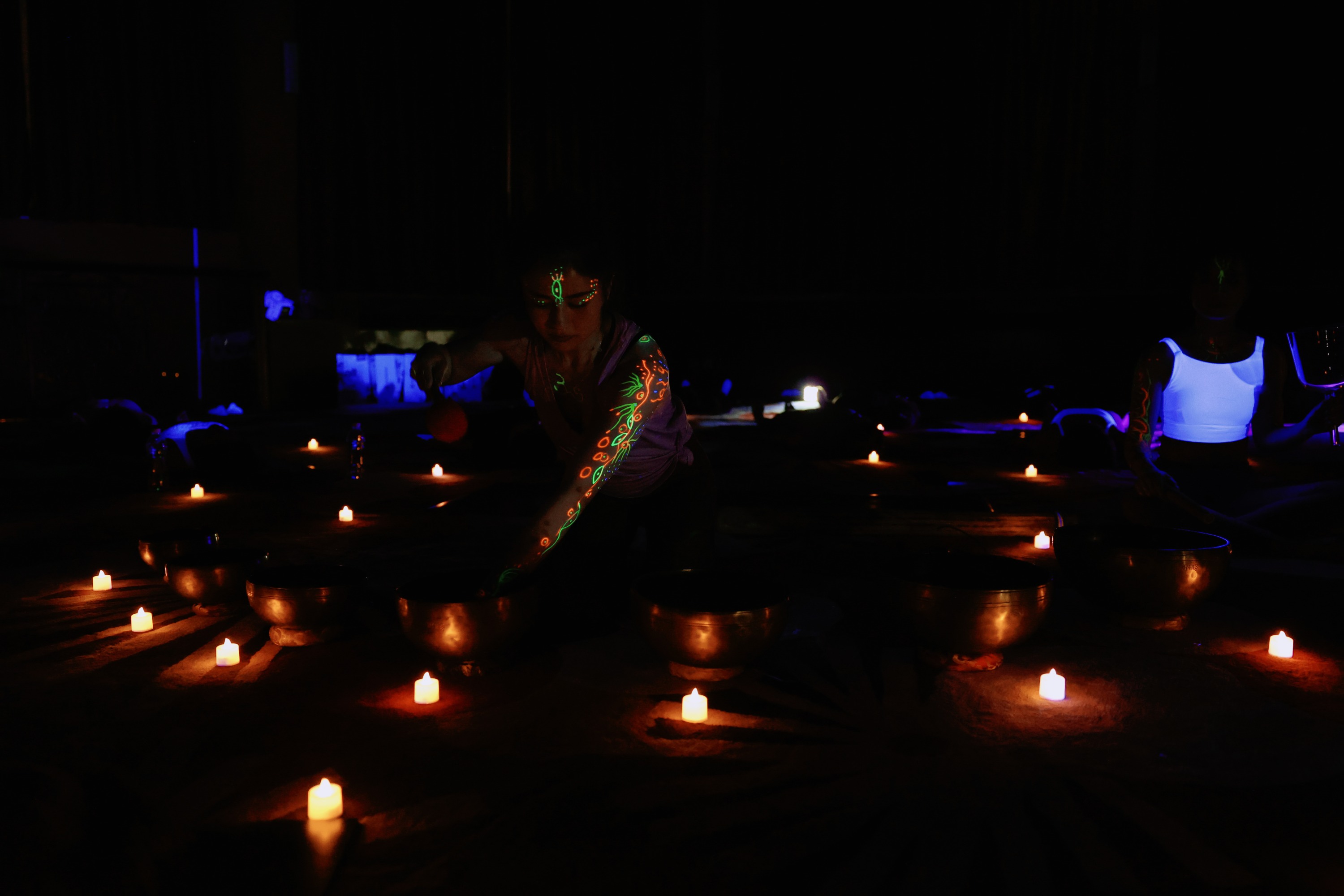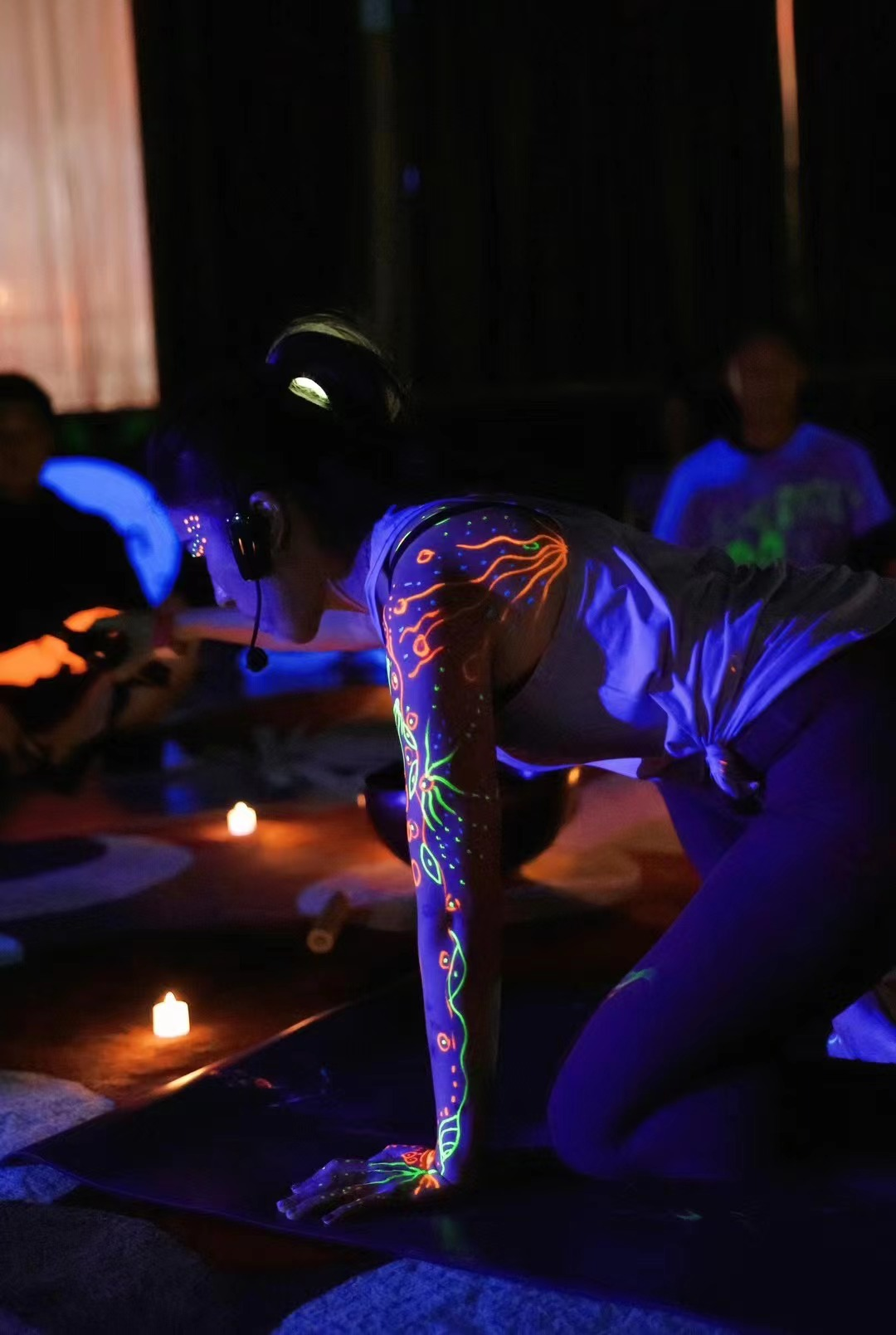(在黑暗中,以身体作为画布,尽情舒展身体,拥抱健康)