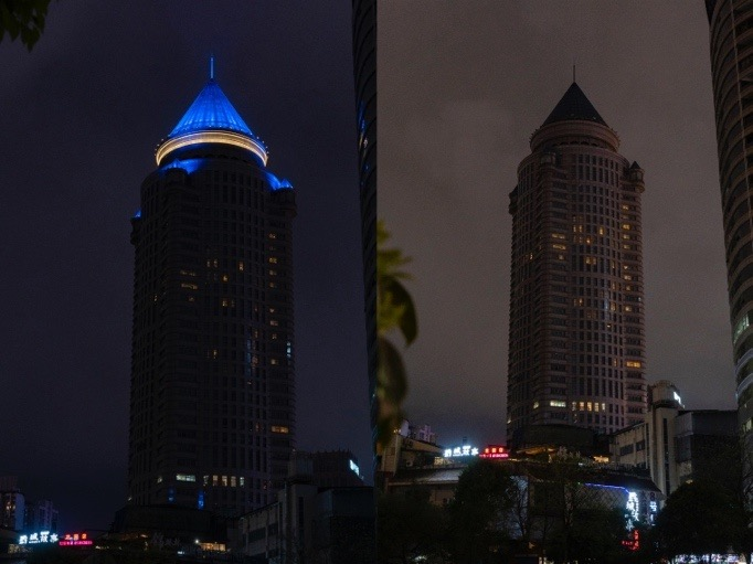 3月25日20:30,贵阳喜来登贵航酒店如约关闭了酒店外部装饰灯光,并调暗了酒店内部非必要的灯光供应。