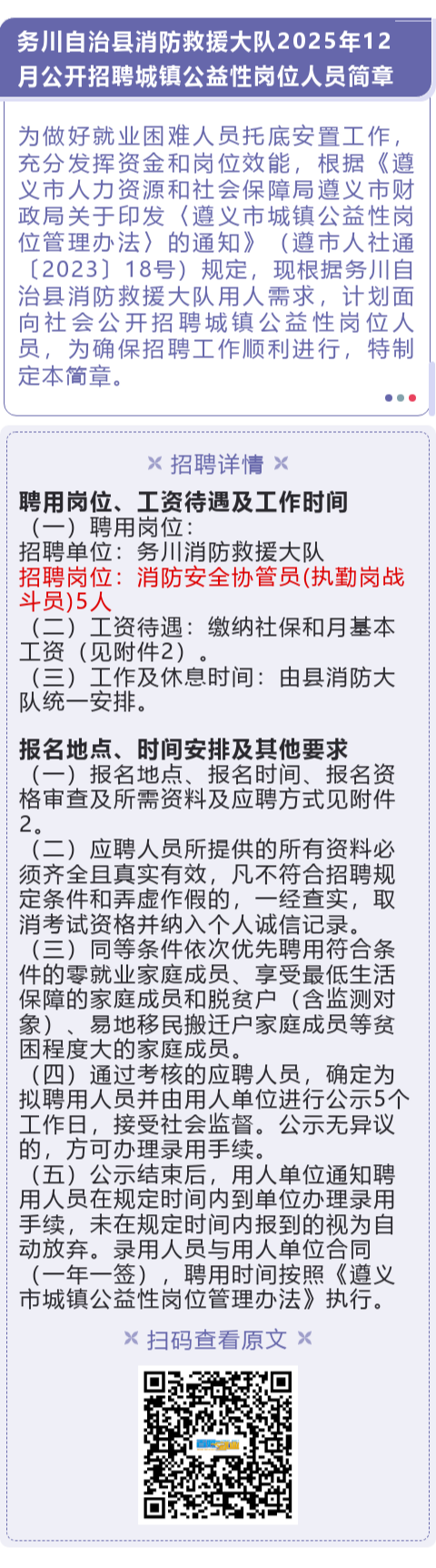【政府机关】招聘消防安全协管员(执勤岗战斗员)!高中起报!