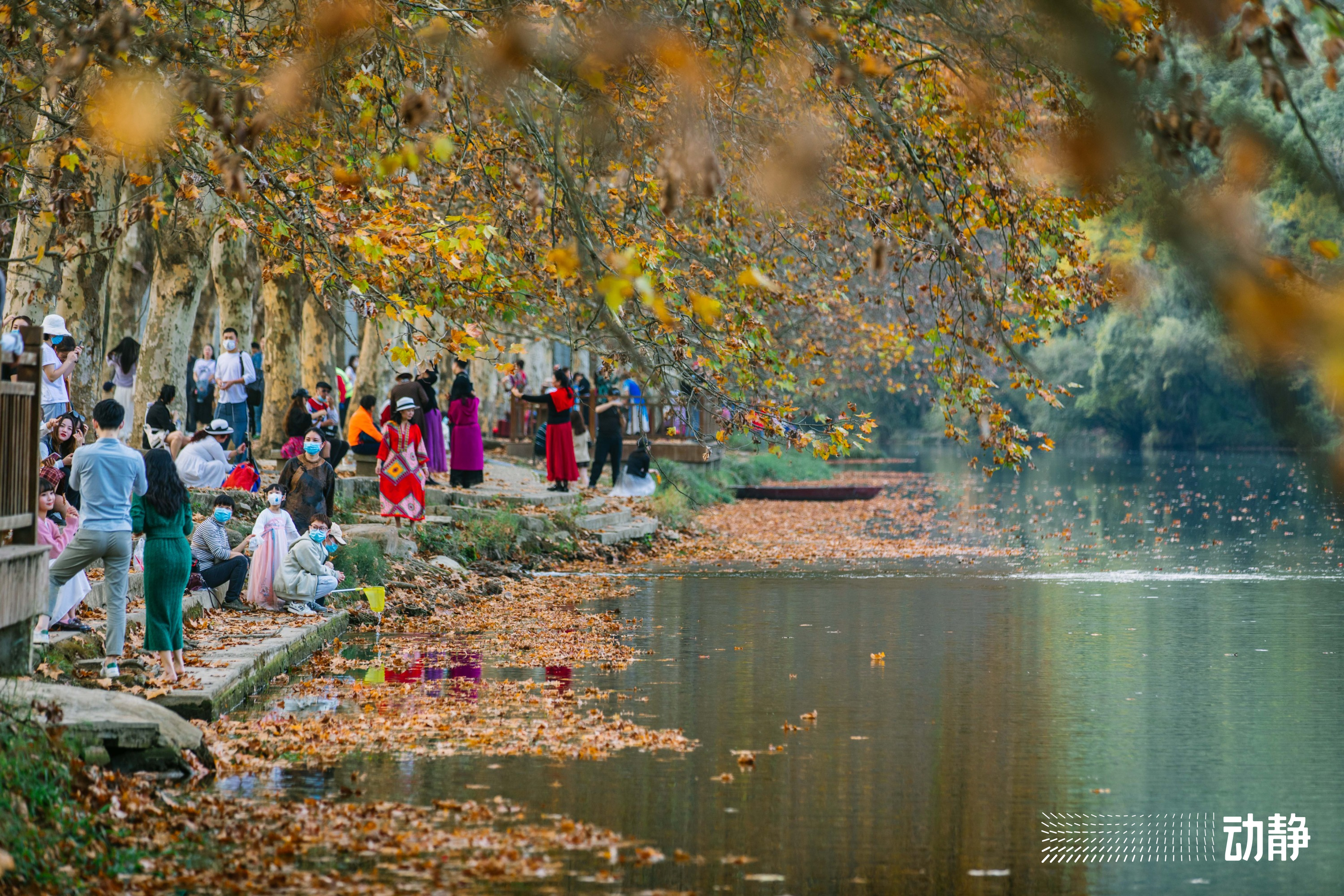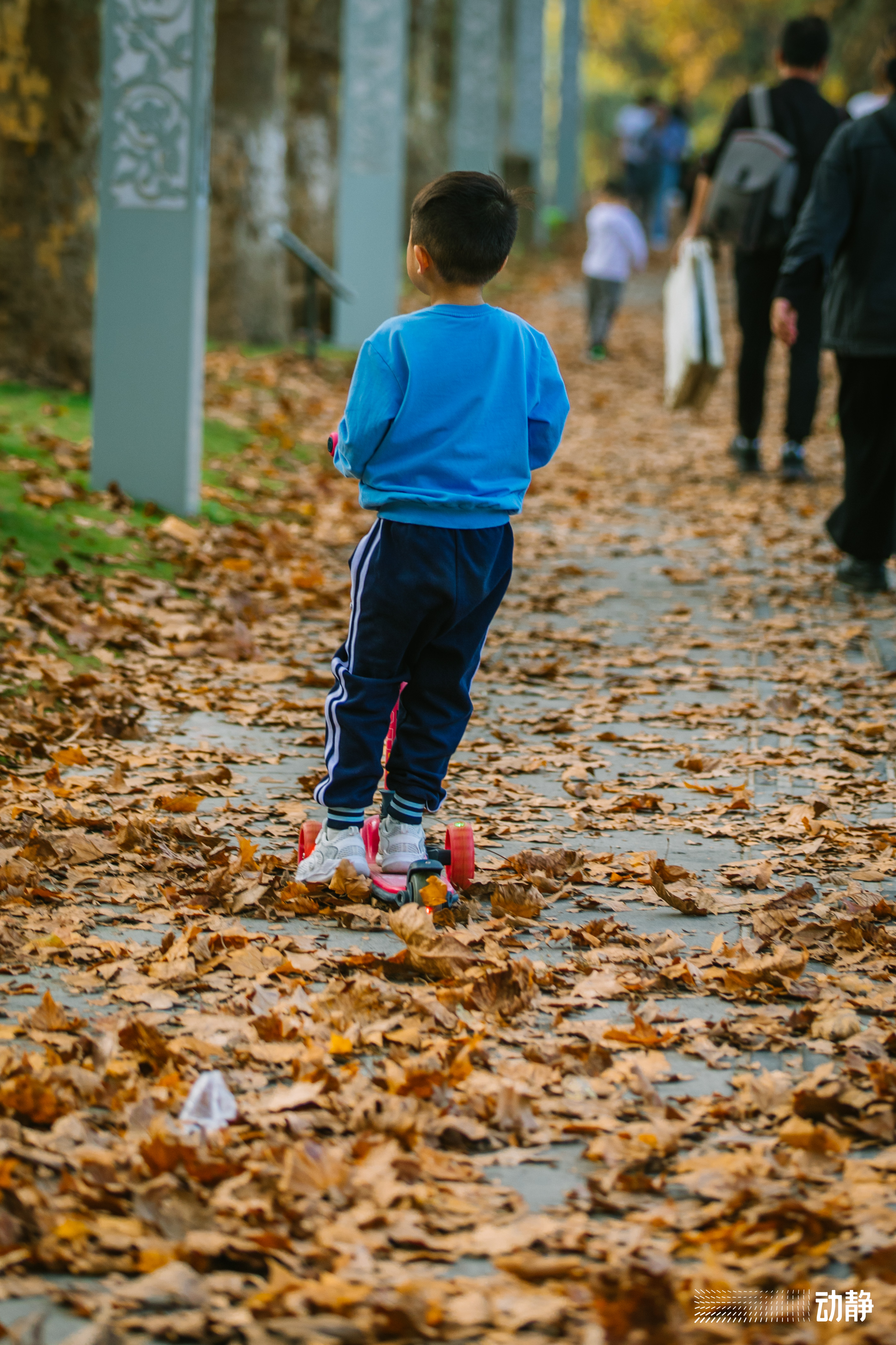 走在大道上,脚下的梧桐叶沙沙作响声,小孩玩乐的欢呼声,游客的赞美声,与如画风景融为一体。有人不禁拿出用相机,定格黄金大道的最美瞬间。