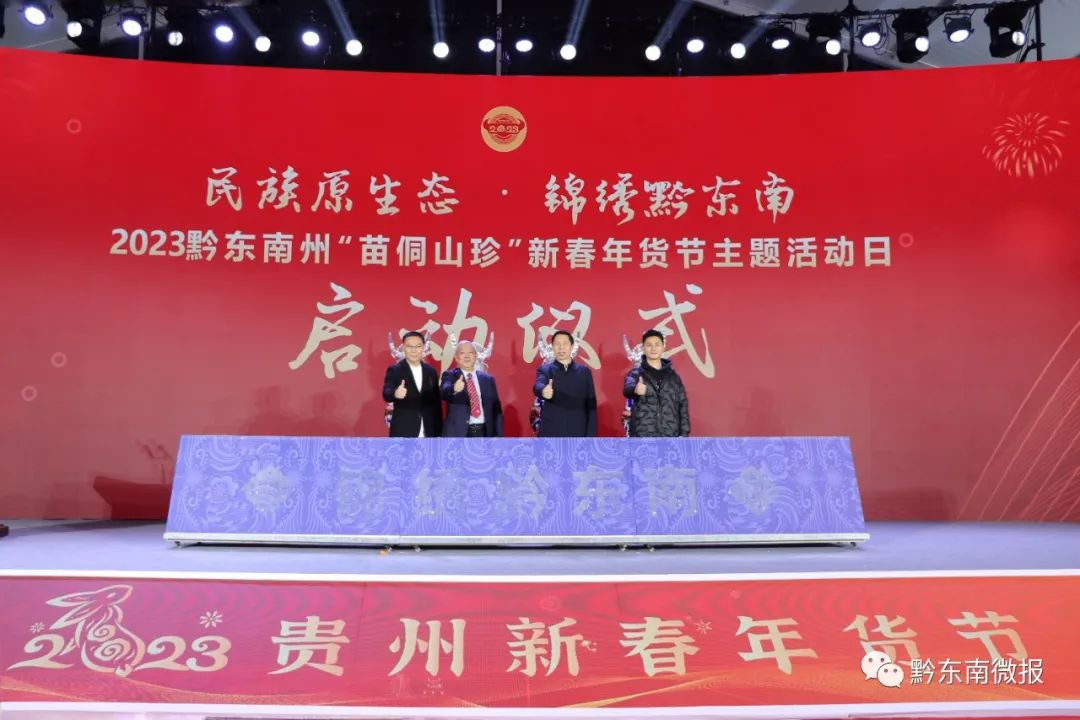 2023黔东南州“苗侗山珍”新春年货节主题活动日活动,由黔东南州人民政府主办,黔东南州商务局、州农业农村局、州文体广电旅游局、州投资促进局、州政府驻贵阳办事处、州文联等部门承办,通过集中开展商贸推荐会、文化旅游宣传推介会、招商推介会、年货展销会和文化展示会“五会”,全方位展示黔东南特色农产品、文化旅游产品、重点餐饮企业形象和开放型经济工作风貌,营造欢乐祥和、喜迎新春的浓厚氛围。州直有关部门负责人,贵州省相关旅游行业协会以及饭店分会、旅行社分会、商品分会、教育分会和各大涉旅企业、旅行社和参展商、采购商以及媒体记者等70多人参加开幕式。