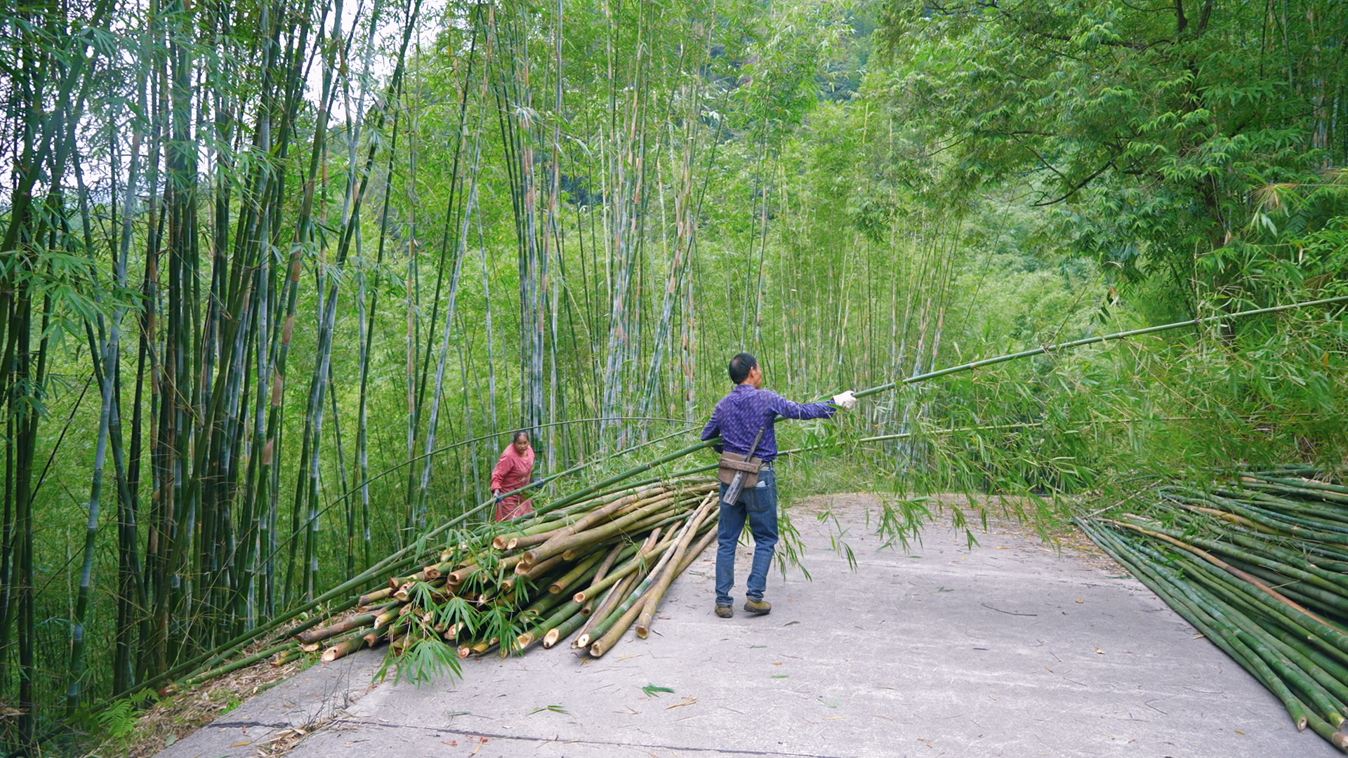 图为赤水市丙安镇艾华村村民文德林砍竹子
