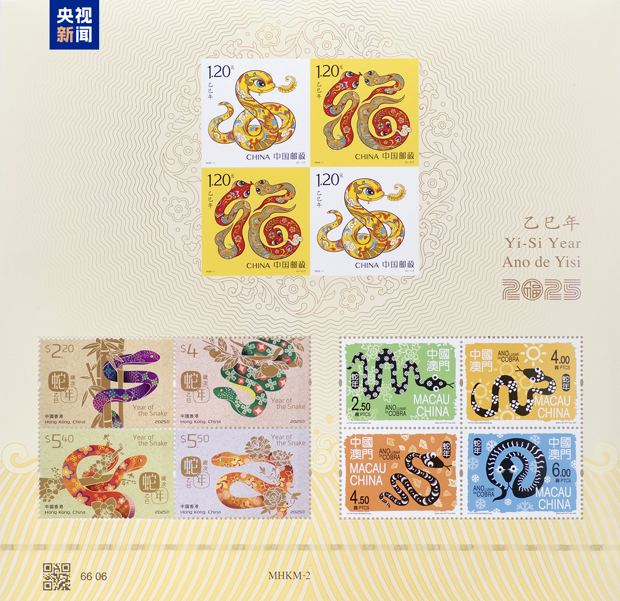 今天,中国邮政发行了《乙巳年》特种邮票,这也是我国发行的第四轮生肖邮票。此外,中国邮政和香港、澳门邮政部门共同印制的生肖同题材邮票三地小全张今日同步发行。