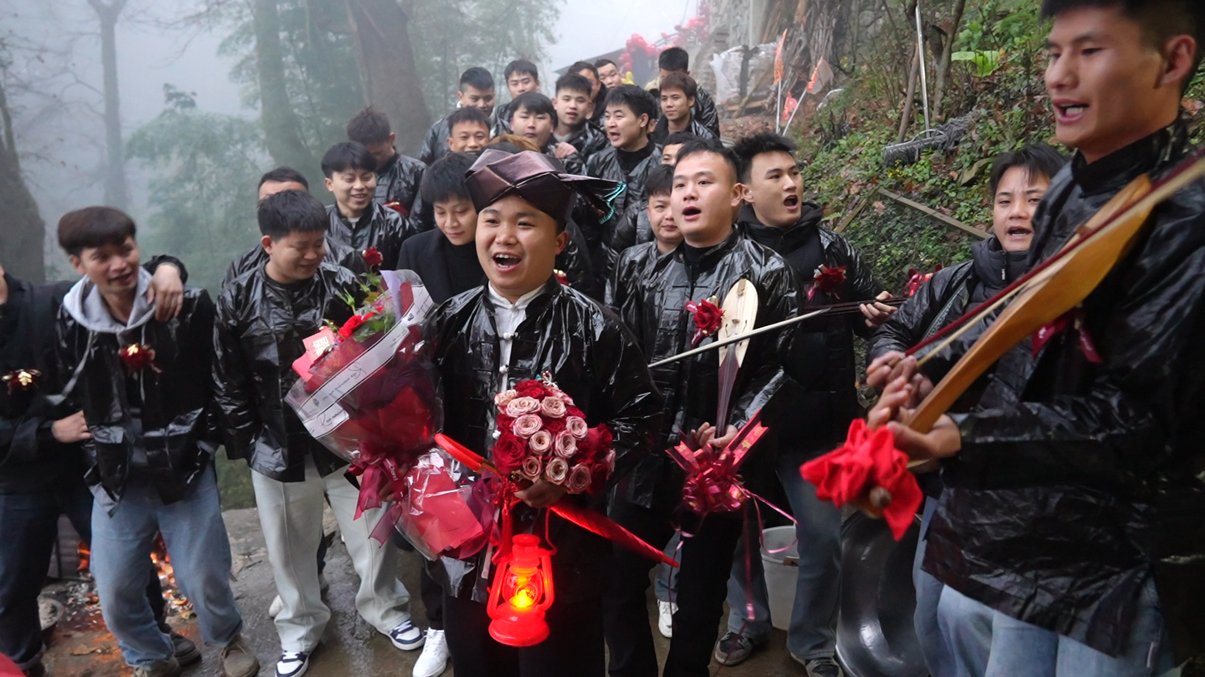 清晨,天刚蒙蒙亮,双江镇四寨村的侗族小伙石富强身着崭新侗装,携伴郎团,手持侗族琵琶、牛腿琴等传统乐器,来到龙额镇思故村迎娶新娘吴兴兰。庞大的伴郎团以悠扬的侗族大歌传情达意,巧妙应对伴娘团设下的层层“歌关”。