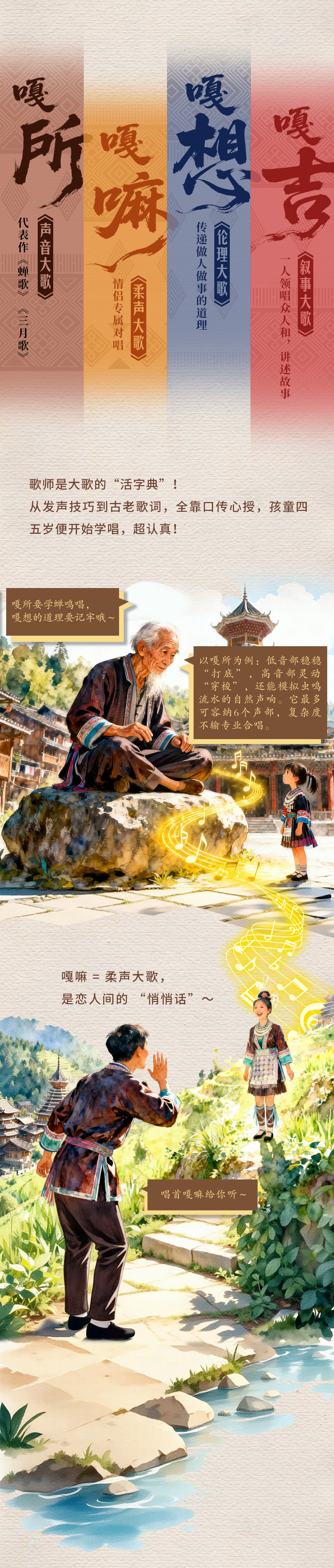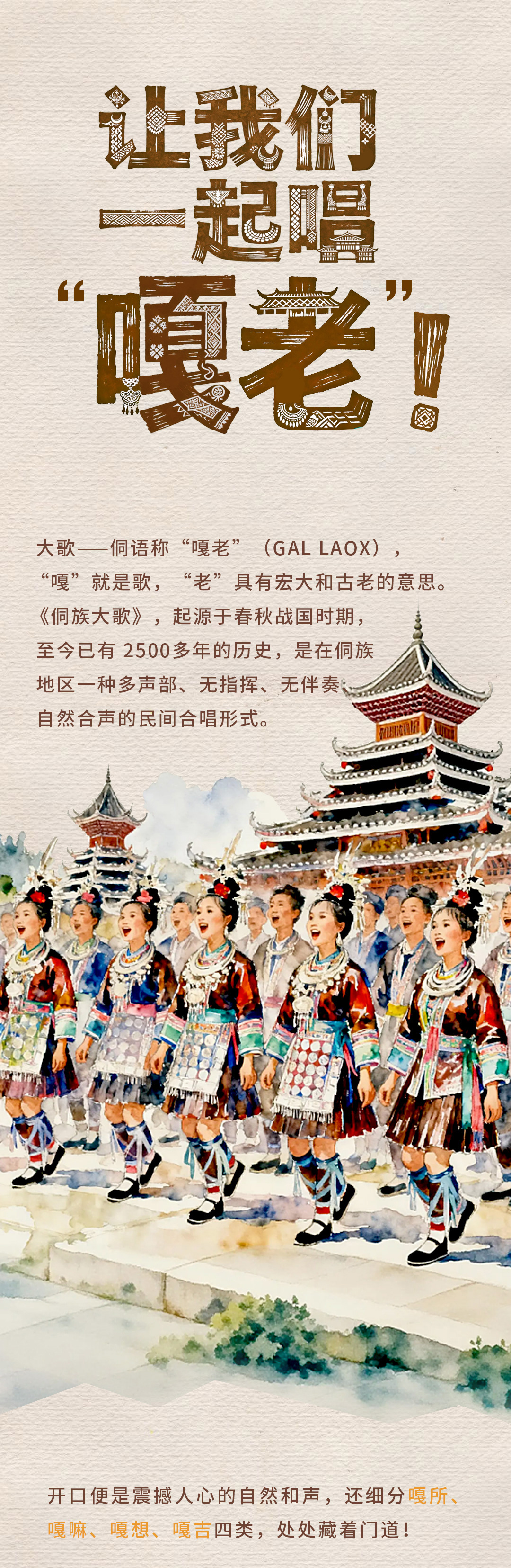 在非物质文化遗产的璀璨星河中,有一种歌声穿越 2500 年时光,以无指挥、无伴奏的自然和声,在侗族鼓楼与山水间悠悠传唱。它是“嘎老”,是侗族大歌,是刻在民族血脉里的天籁密码。