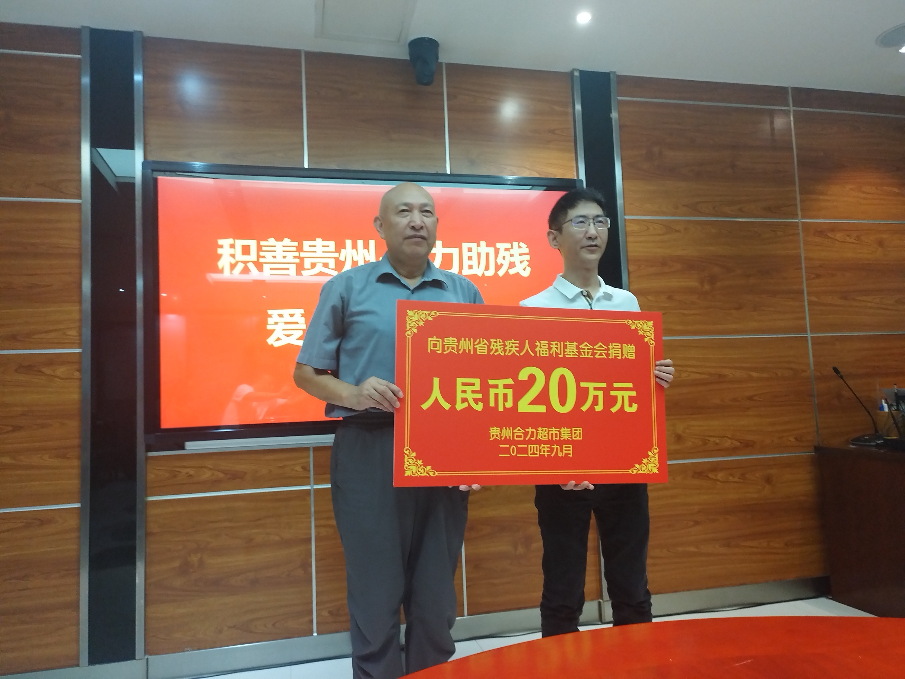 9月6日上午,以“积善贵州·合力助残”为主题的爱心捐赠仪式在贵州合力超市集团举行。捐赠现场,贵州合力超市集团向贵州省残疾人福利基金会捐助资金20万元。