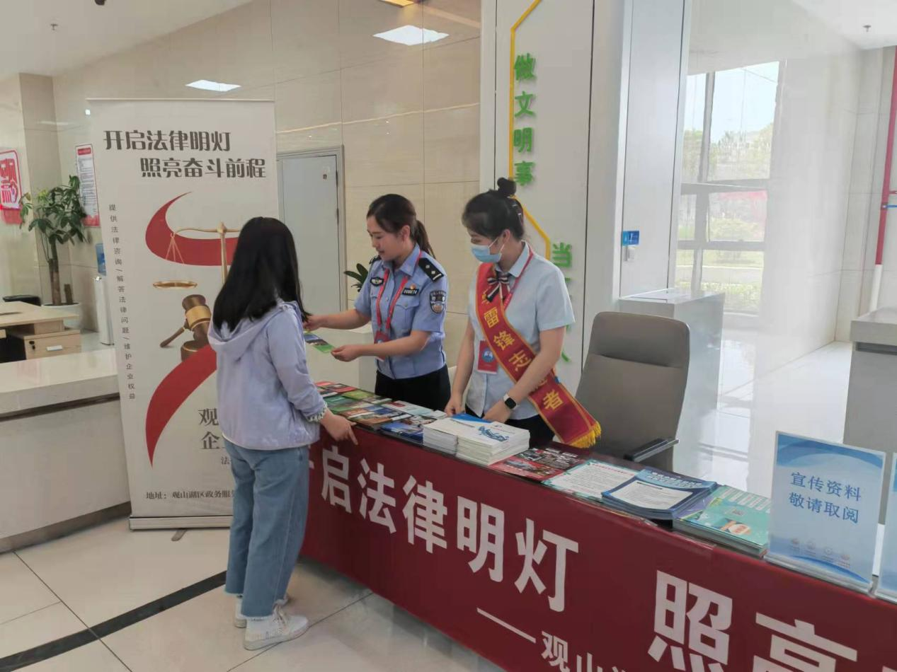 为深化法治政府建设,进一步优化政务服务营商环境,加强道路交通安全法制宣传,预防和减少道路交通事故,2023年5月5日,贵阳市公安交通管理局借助观山湖区“企业之家”法律服务资源咨询活动,通过发放道路交通安全宣传资料,解答群众现场提问等方式,向企业和群众普及道路交通安全法律知识等相关法律知识,同时发放交通安全指南,为平安观山湖提供有力的支撑和保障。