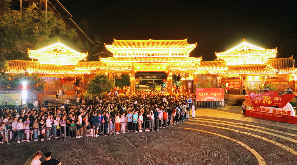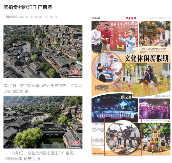新业态、新项目丰富多样,为游客带来多元体验。中秋国庆双节期间,景区精心组织了十二道拦门酒、高山流水、情歌对唱、苗族文化大巡游、打糍粑比赛、挑稻草比赛、“讨花带·苗族原生态歌舞表演、苗族刺绣蜡染技艺体验、歌唱《我和我的祖国》等20余项民俗文化活动让广大游客体验参与。在以往传统文化活动的基础上,西江千户苗寨景区新增了“千家灯火·灯光秀”“夜间旅拍”“西江幻地·剧本杀”等新业态。营造国庆假日旅游氛围的同时提升景区品牌影响力,满足游客日益丰富的文化需求,丰富西江千户苗寨文化内涵,推动西江千户苗寨文旅融合创新,全面提升景区旅游高质量发展。