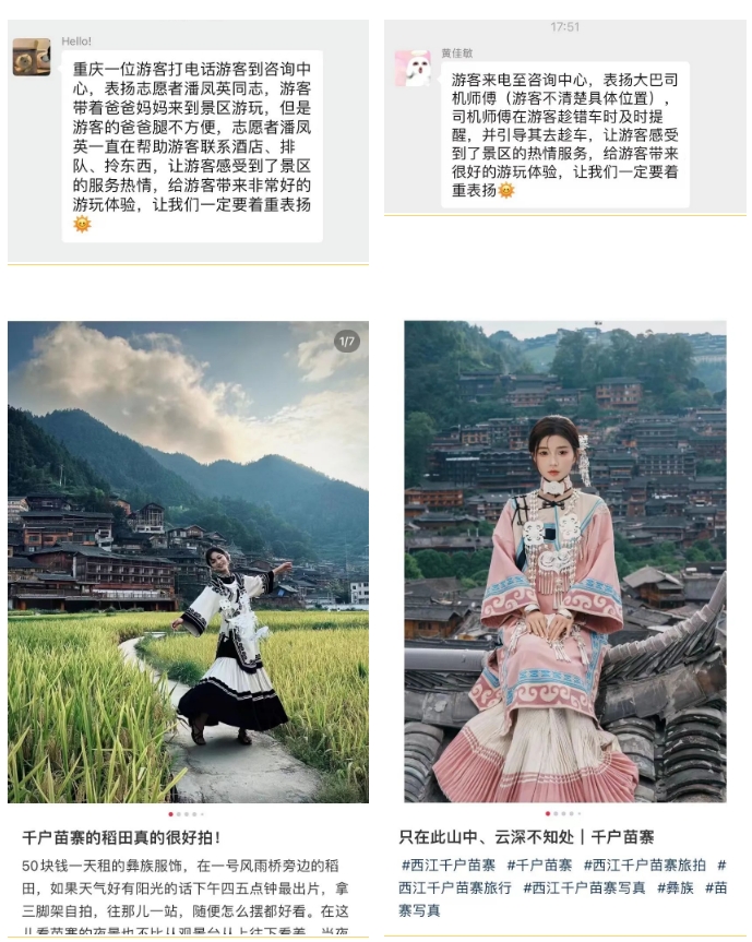 旅游市场运行平稳有序。假日期间,西江千户苗寨景区准备充分,相关部门和景区工作人员现场做好交通秩序疏导、提供旅游咨询服务、引导游客合理安排行程,针对景区北门、西门增派40余辆观光车和25辆旅游观光巴士,保障景区内游客疏导,增加景区志愿服务咨询点和志愿者数量,共计投入景区志愿者1000余人,确保每位游客能享受到优质的旅游体验,保障了假日旅游市场运行秩序平稳有序。