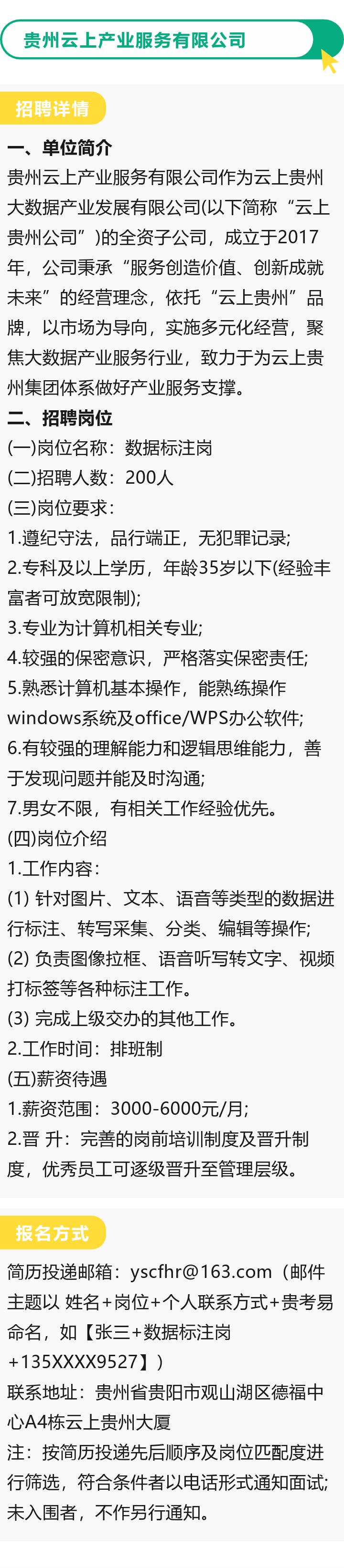 【云上贵州公司子公司】贵州云上产业服务有限公司招聘200人!