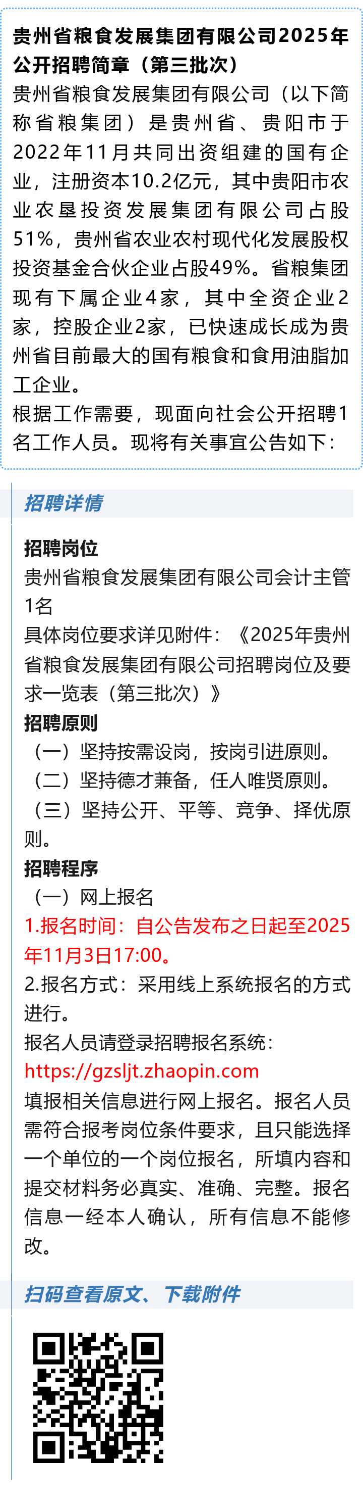 【国企】贵州省粮食发展集团有限公司招聘!报名截止时间:2025年11月3日!
