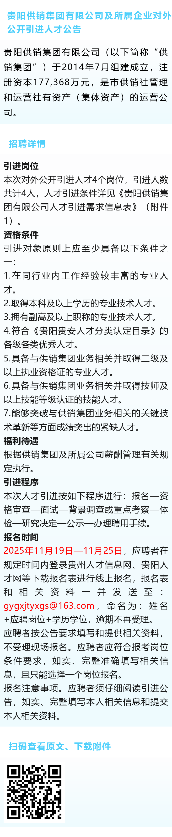 【国企】贵阳供销集团有限公司及所属企业招聘!报名截止时间:11月25日!