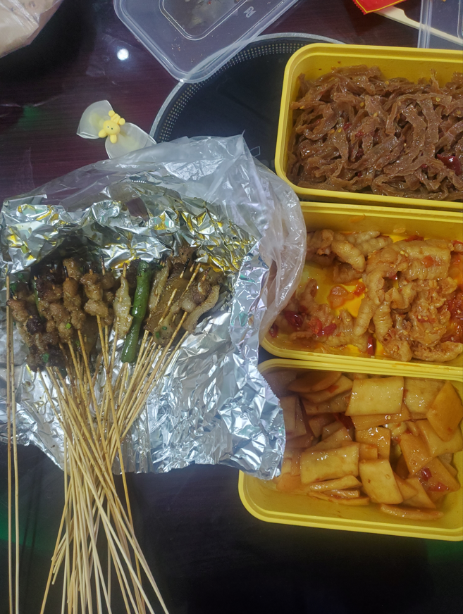 比如我和朋友走在大街上,哪怕是穿的鞋子没有那么舒服,我们也兴奋走了两公里,一路上只要有售卖食物的,一定要进去看看,毕竟开门的商家还是很少。如若是常规的那些吃食,我们默契地走开,终于一路收获满满,买到了梦寐以求的肉夹馍、烤肉、烤饼、泡椒凤爪,凉拌冻魔芋、麻辣酸萝卜,好兴奋啊!迫不及待赶回家分享给小朋友们。