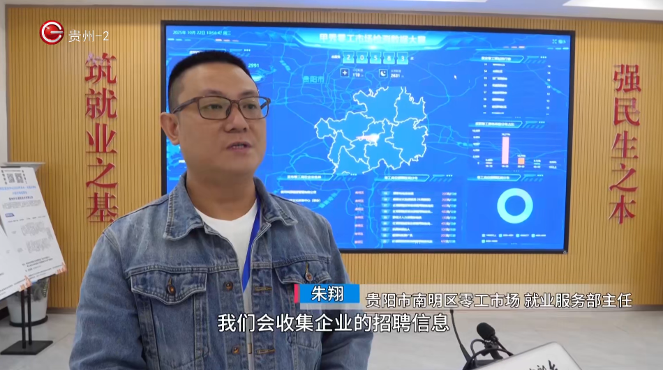 贵阳市南明区零工市场就业服务部主任朱翔:目前南明区零工市场已和辖区214个村居建立服务链接,平均每日发布50余个岗位,招聘人数达300-500人,共入库企业三千余家,直接反馈就业7000余人,开展招聘、求职、创业活动120余场。