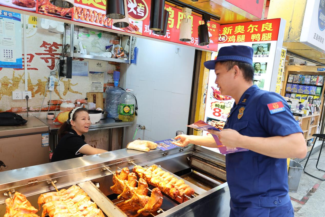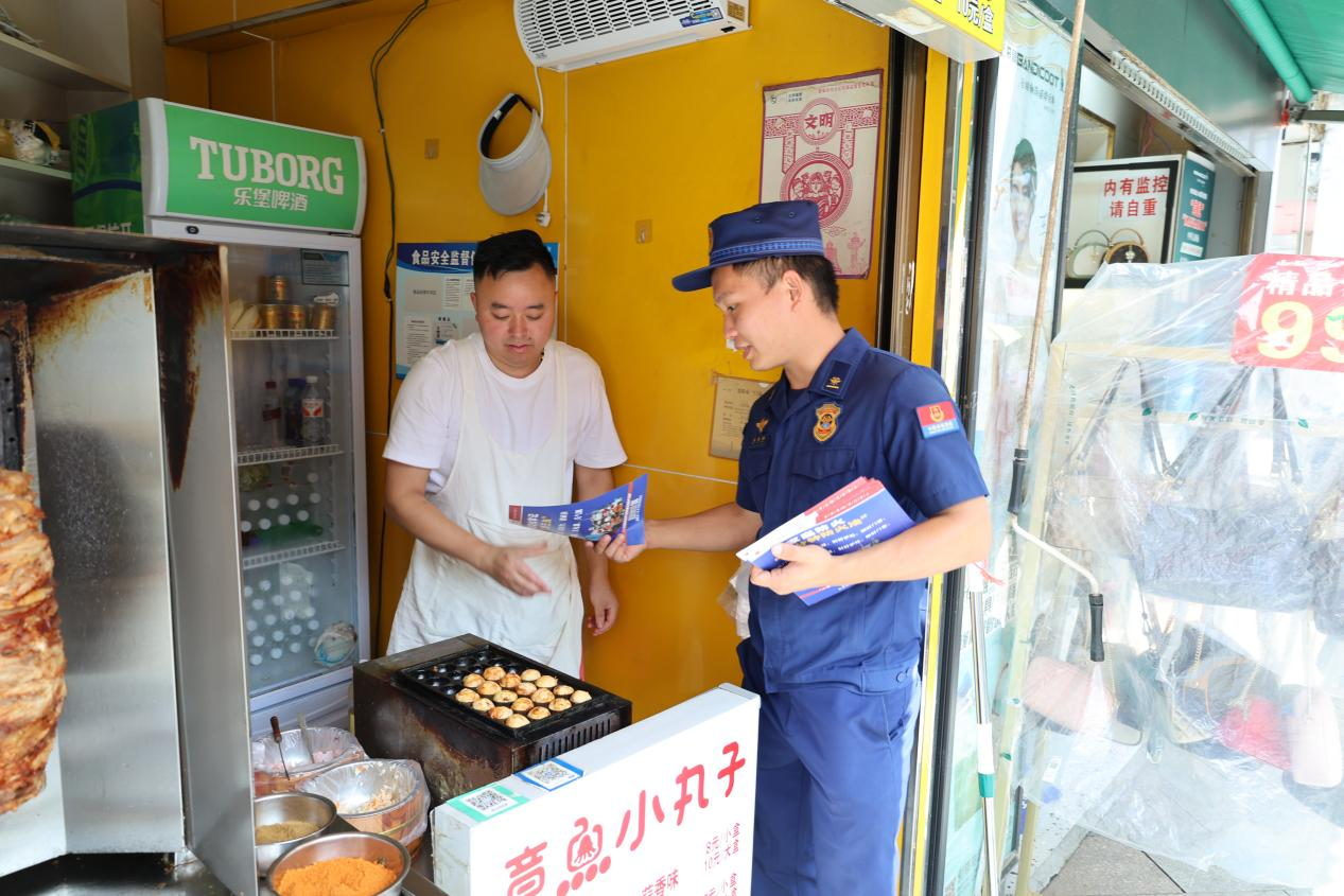 近日,贵阳市白云区消防救援大队深入辖区沿街商铺开展消防安全知识宣传活动,增强商铺经营者的消防安全意识,有效预防和减少火灾事故发生,扎实推进辖区夏季火灾防控工作。