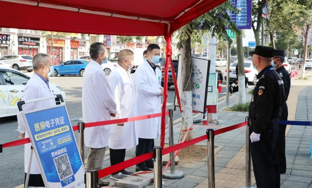 北京积水潭医院贵州医院党委书记邱冰一行调研了医院各出入口卡点、核酸检测点、门急诊、防疫物资储备仓库、食堂等重点岗位、关键场所的疫情防控和后勤保障工作。