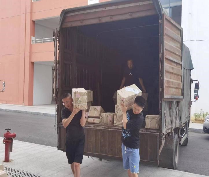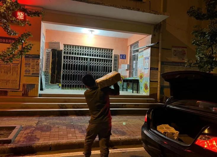 员工深夜为学校送书