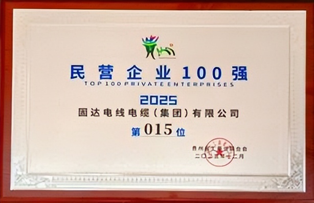 12月24日,“2025年贵州民营企业100强”系列榜单在贵阳正式揭晓。固达电线电缆集团凭借突出的市场表现力、企业综合实力及产品核心竞争力,不仅第九次蝉联贵州民营企业100强(位列第15),同时荣登贵州制造业民营企业20强(位列第9)。这一双重荣誉,不仅是一份年度成绩单,更是观察贵州乃至中国制造业在专业化、智能化赛道上奋力奔跑的一个生动样本。